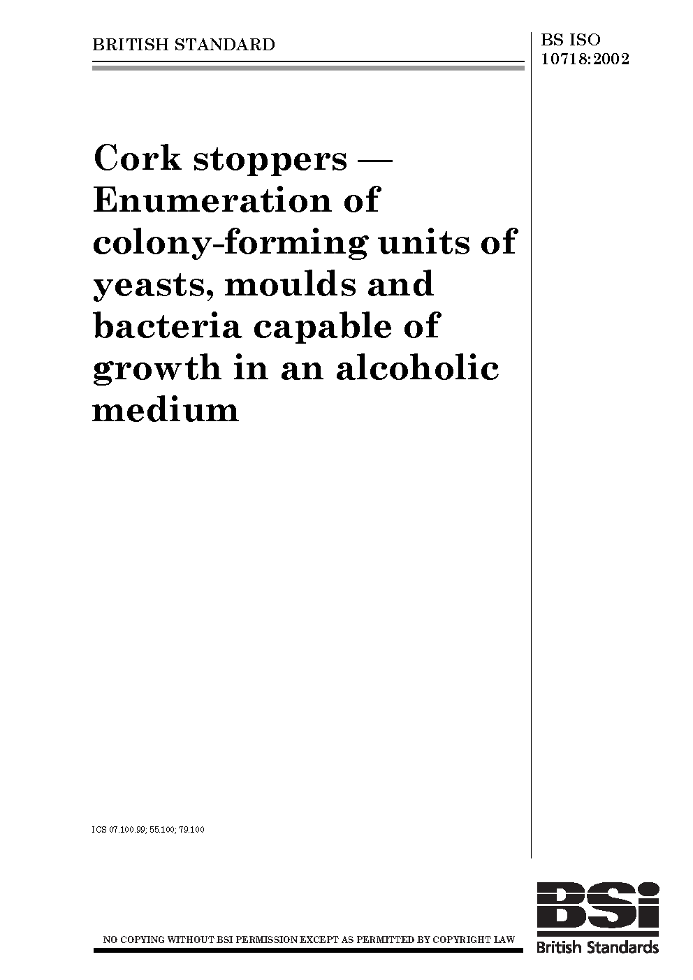 Aliphatic alcohols;Microorganisms;Microbiology;Bacteria count methods;Count methods (microbiology);Yeast;Biological analysis and testing;Alcoholic beverages;Closures;Microbiological analysis;Cork;Stoppers