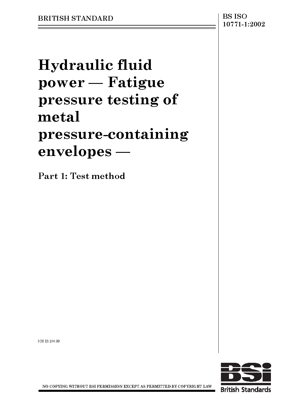 Hydraulic fluid power. Fatigue pressure testing of metal pressure-containing envelopes Test method