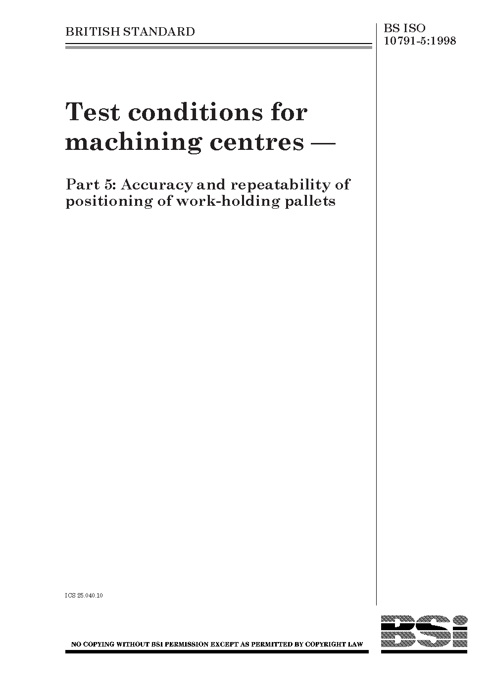 Test conditions for machining centres Accuracy and repeatability of positioning work-holding pallets