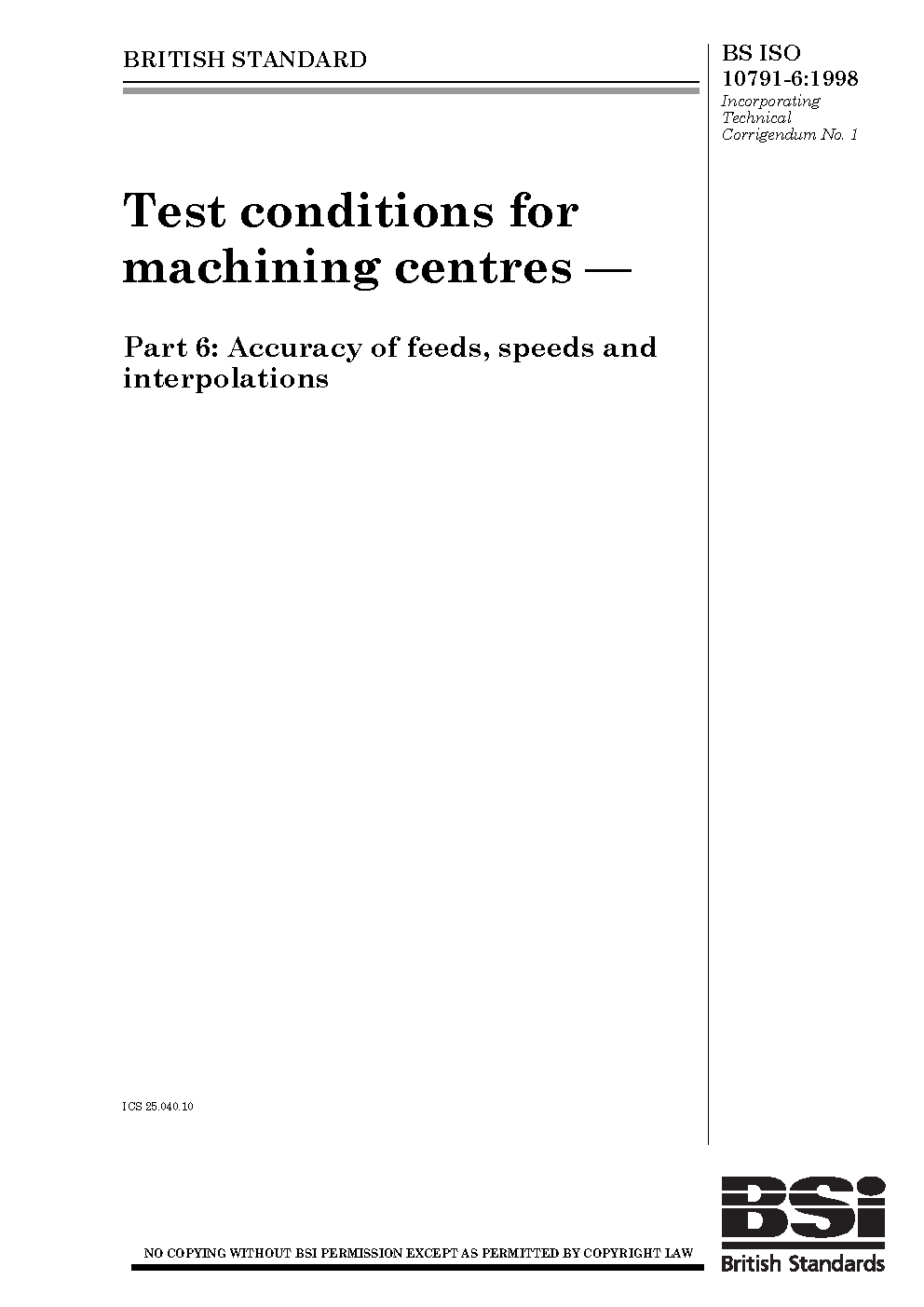 Testing conditions;Defects;Accuracy;Angles (geometry);Interpolation;Dynamic testing;Acceptance inspection;Feeders (materials handling equipment);Velocity;Machine tools;Numerical control;Tolerances (measurement);Centres (machine tool components);Dimensional tolerances;Performance testing;Dimensional measurement;Test equipment;Machining tolerances