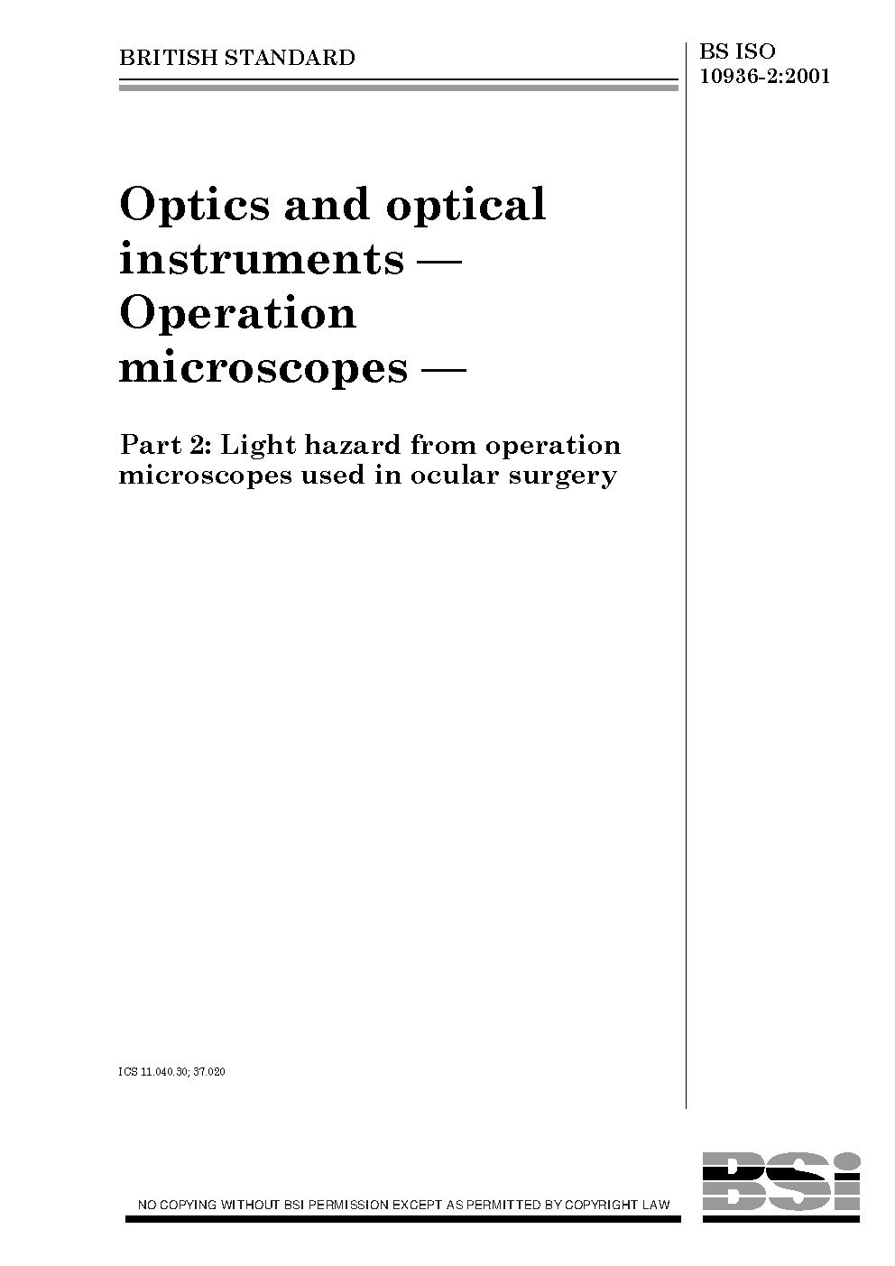 Optics and optical instruments. Operation microscopes Light hazard from operation used in ocular surgery