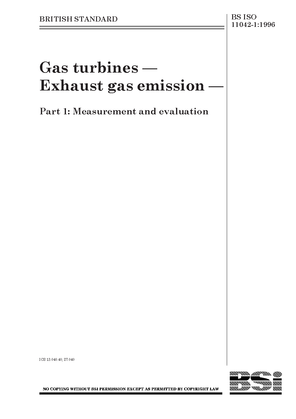 Gas turbines. Exhaust gas emission Measurement and evaluation