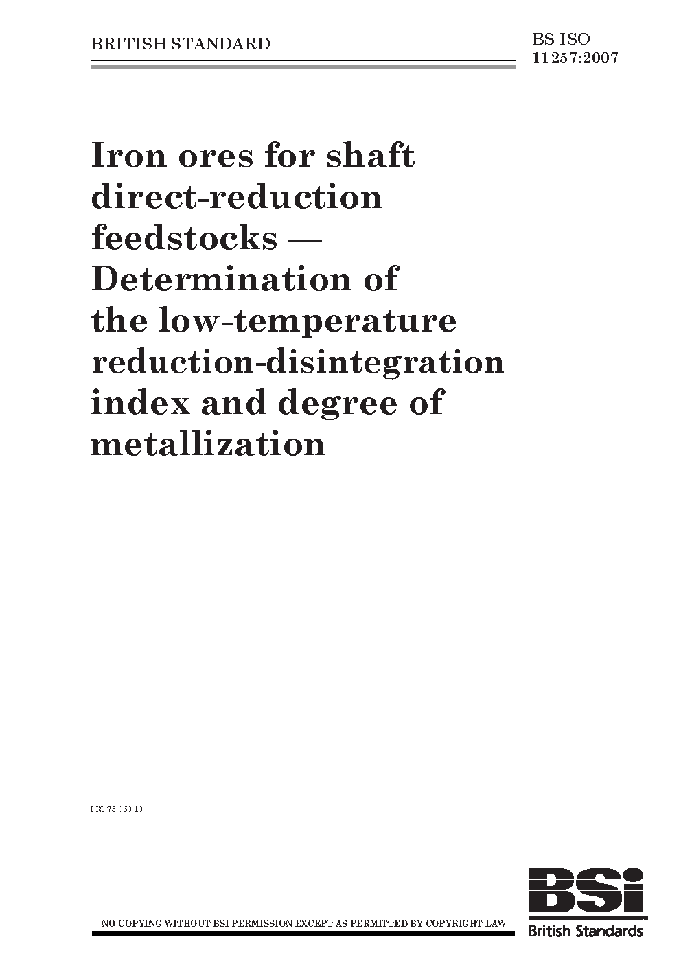 Iron ores for shaft direct-reduction feedstocks. Determination of the low-temperature reduction-disintegration index and degree of metallization