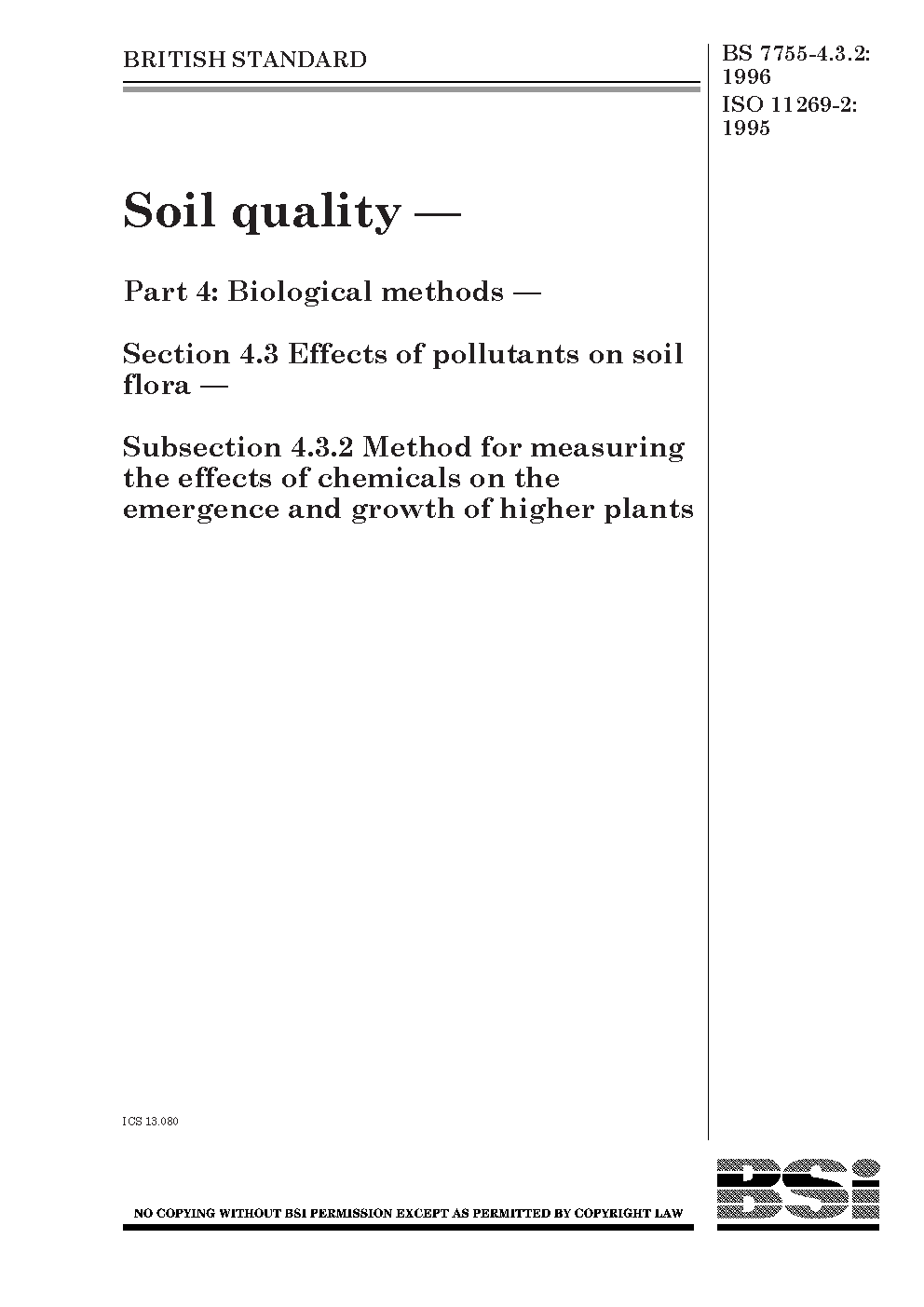 Soil quality. Determination of the effects pollutants on soil flora Effects chemicals emergence and growth higher plants