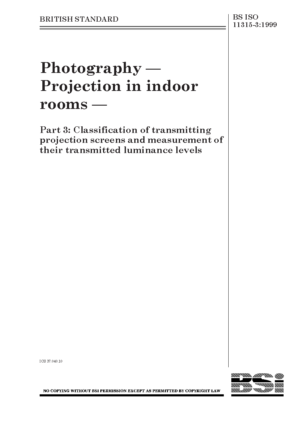 Photography. Projection in indoor rooms Classification of transmitting projection screens and measurement their transmitted luminance levels