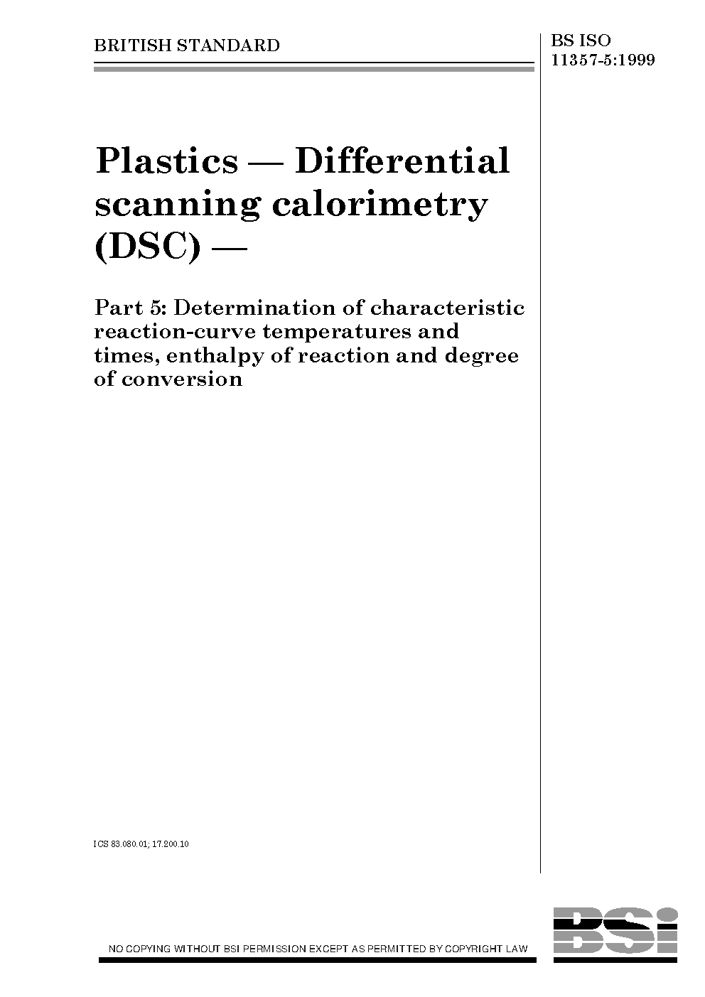 Plastics. Differential scanning calorimetry (DSC) Determination of characteristic reaction-curve temperatures and times, enthalphy reaction degree conversion