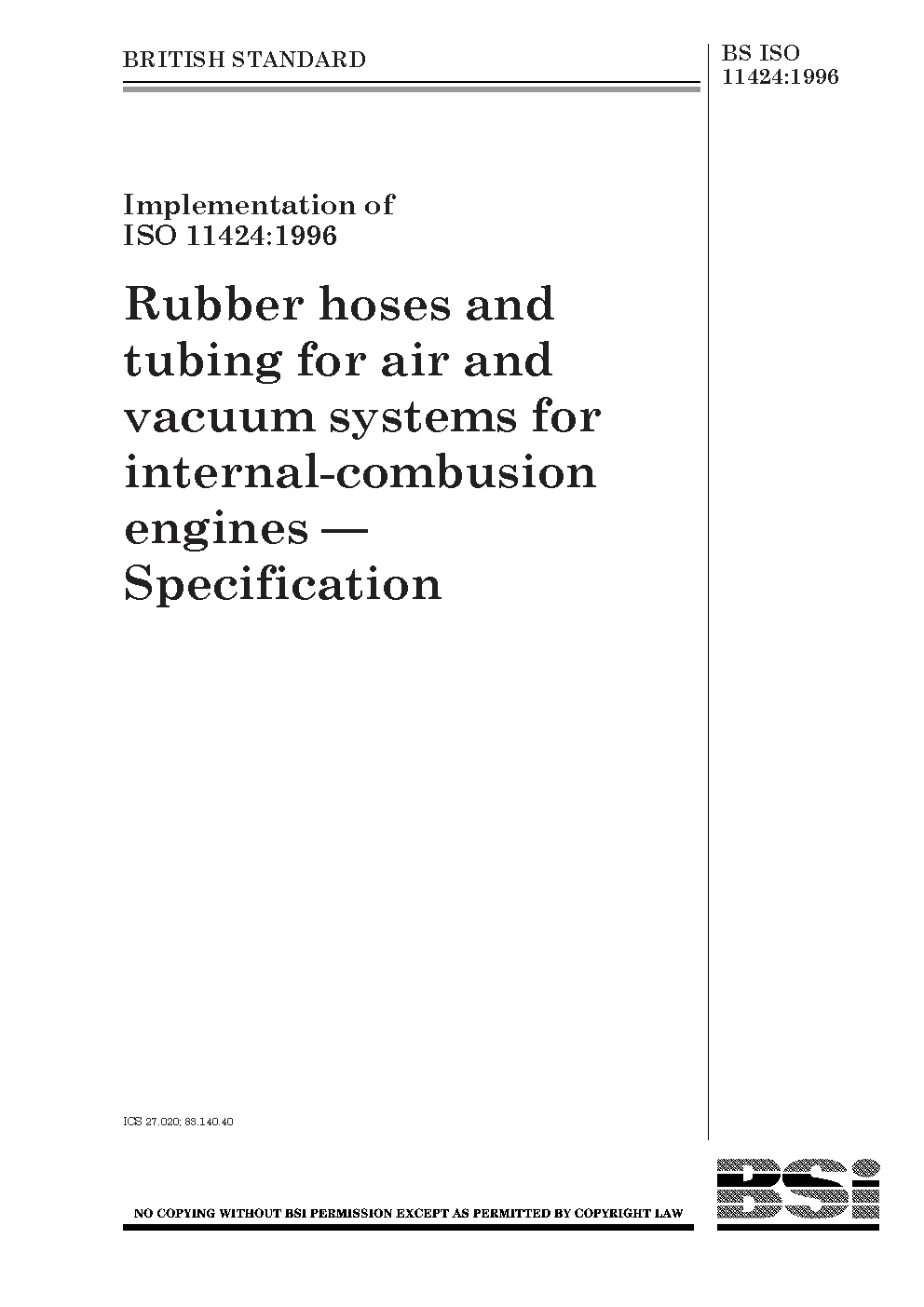 Rubber hoses and tubing for air and vacuum systems for internal-combustion engines. Specification