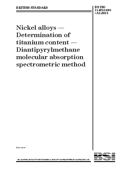 Instrumental methods of analysis;Chemical analysis and testing;Spectrophotometry;Determination of content;Specimen preparation;Titanium;Calibration;Absorption spectrophotometry;Control samples;Interferences (chemical);Molecular absorption spectrophotometry;Test equipment;Reproducibility;Chemical composition;Nickel alloys