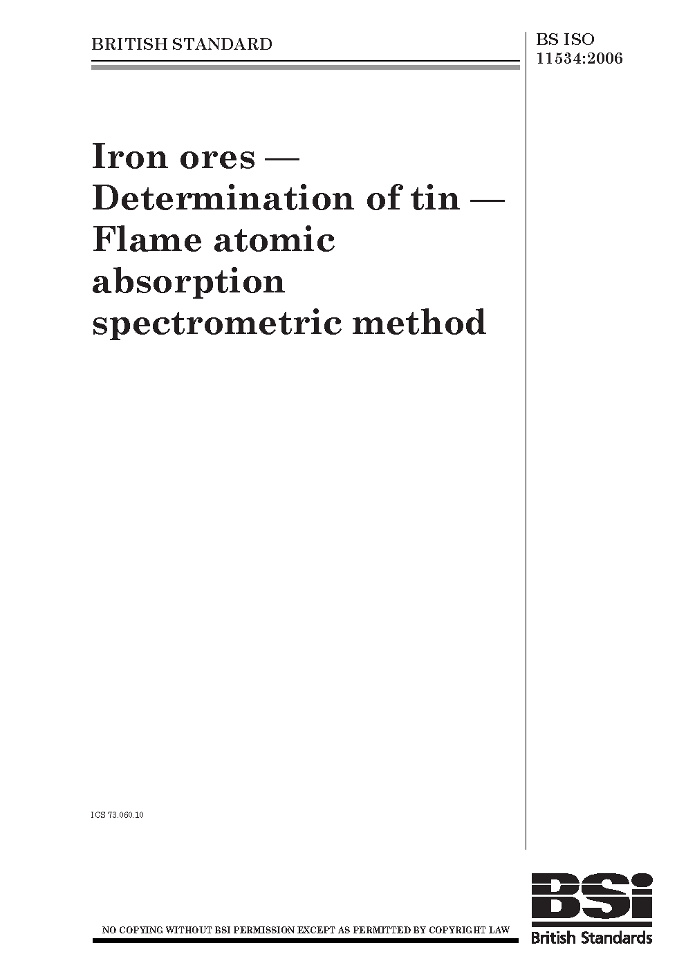 Test equipment;Iron ores;Chemical analysis and testing;Test specimens;Tin;Flame atomic absorption spectrometry;Sintered products;Metalliferous minerals;Conglomerates;Determination of content;Concentrates