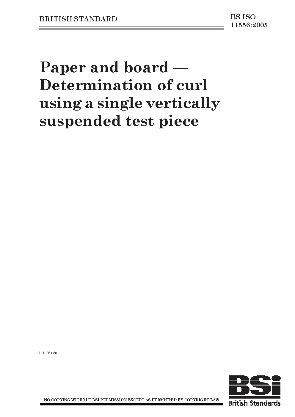 Paper and board. Determination of curl using a single vertically suspended test piece