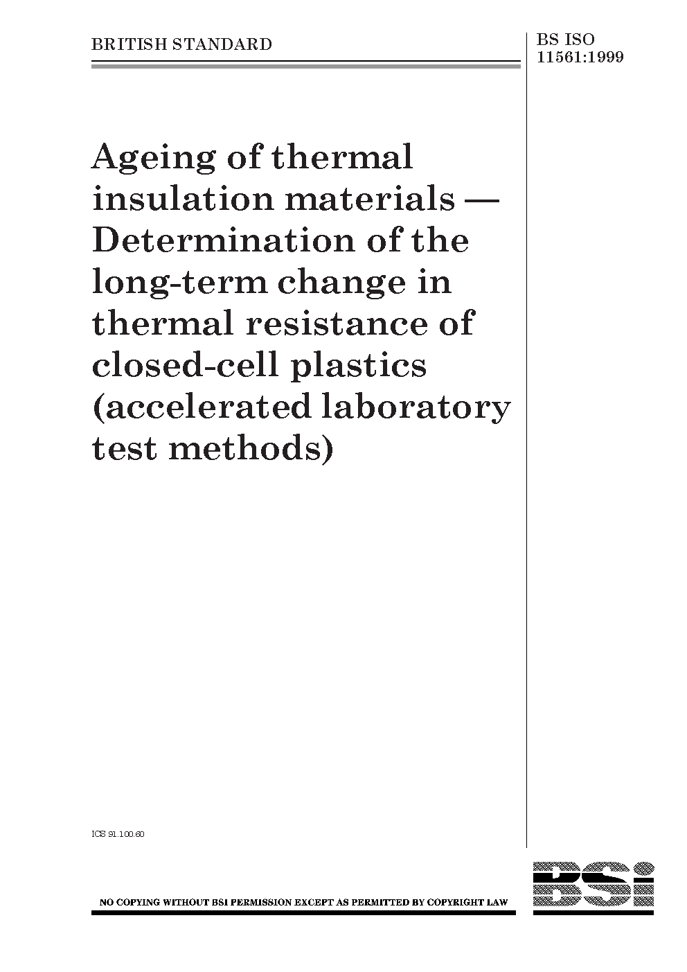 Dimensions;Surface defects;Test equipment;Plastics;Precision;Artificial ageing tests;Thermal resistance;Test specimens;Life (durability);Thermal insulation;Accelerated testing;Coated materials;Testing conditions;Polymers;Error correction;Thickness;Equations;Test models;Cellular materials;Laboratory testing;Specimen preparation;Bibliography;Ageing tests;Ageing (materials);Thermal measurement