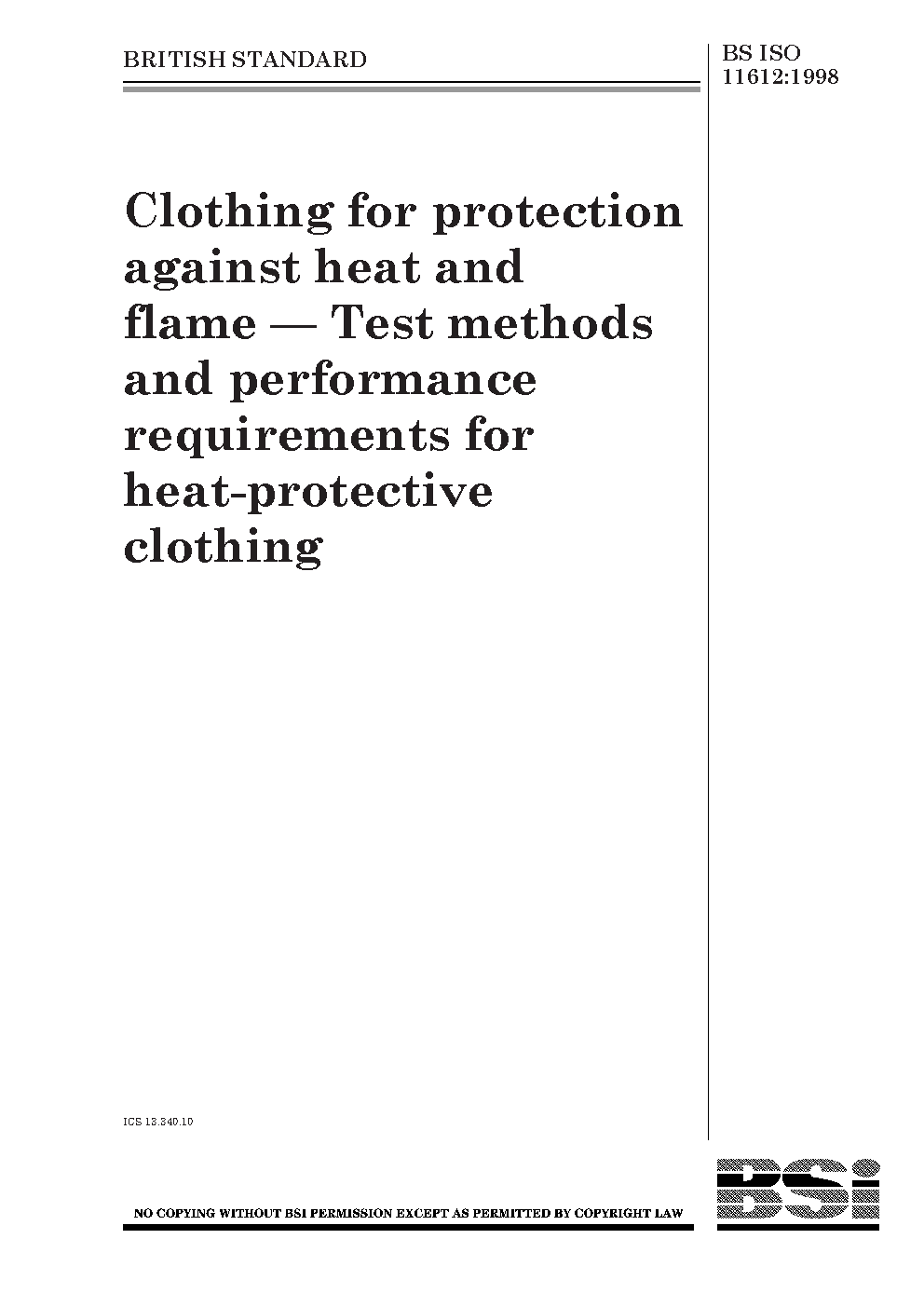 Clothing for protection against heat and flame. Test methods and performance requirements for heat-protective clothing