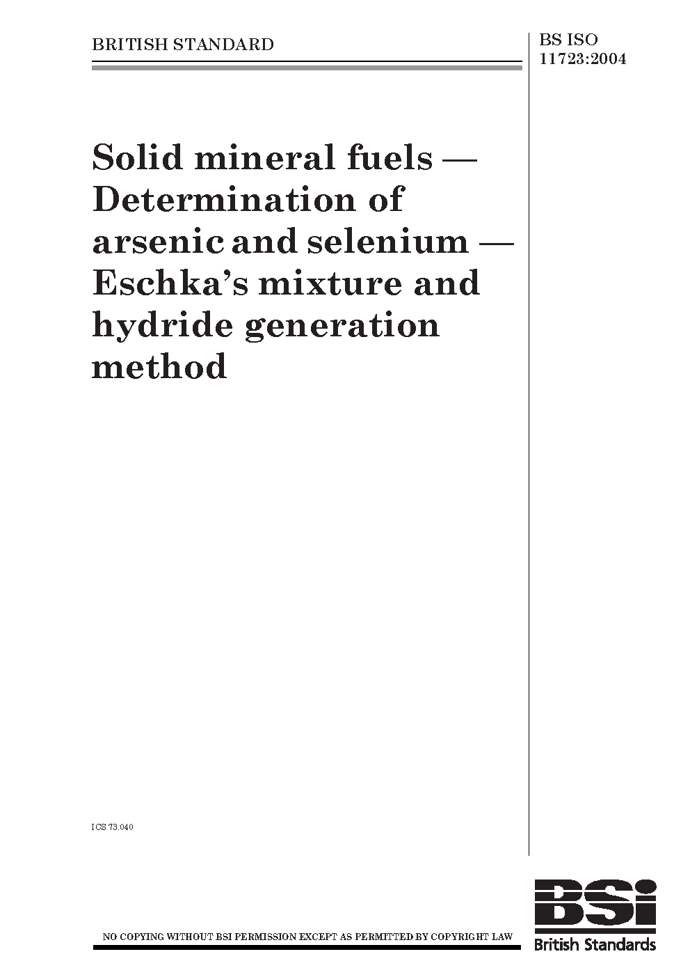 Coal and coke. Determination of arsenic and selenium. Eschka's mixture and hydride generation method