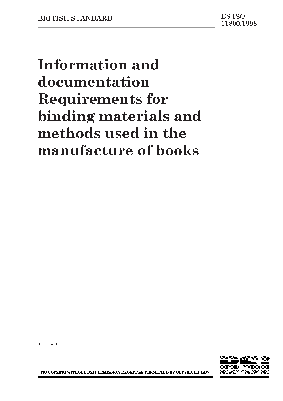 Information and documentation. Requirements for binding materials and methods used in the manufacture of books