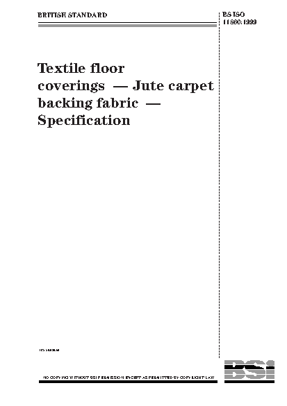 Strength of materials;Length;Cloth;Tex;Carpets;Breaking load;Grades (quality);Floor coverings;Properties;Jute;Oils;Width;Classification systems;Mass;Marking;Textile floor coverings;Sheet flooring;Testing conditions;Determination of content;Chemical analysis and testing;Chemical composition;Dimensional tolerances