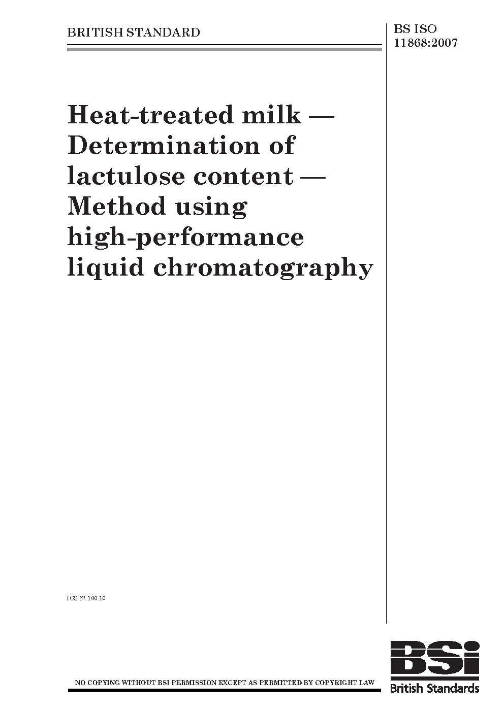 Heat-treated milk. Determination of lactulose content. Method using high-performance liquid chromatography
