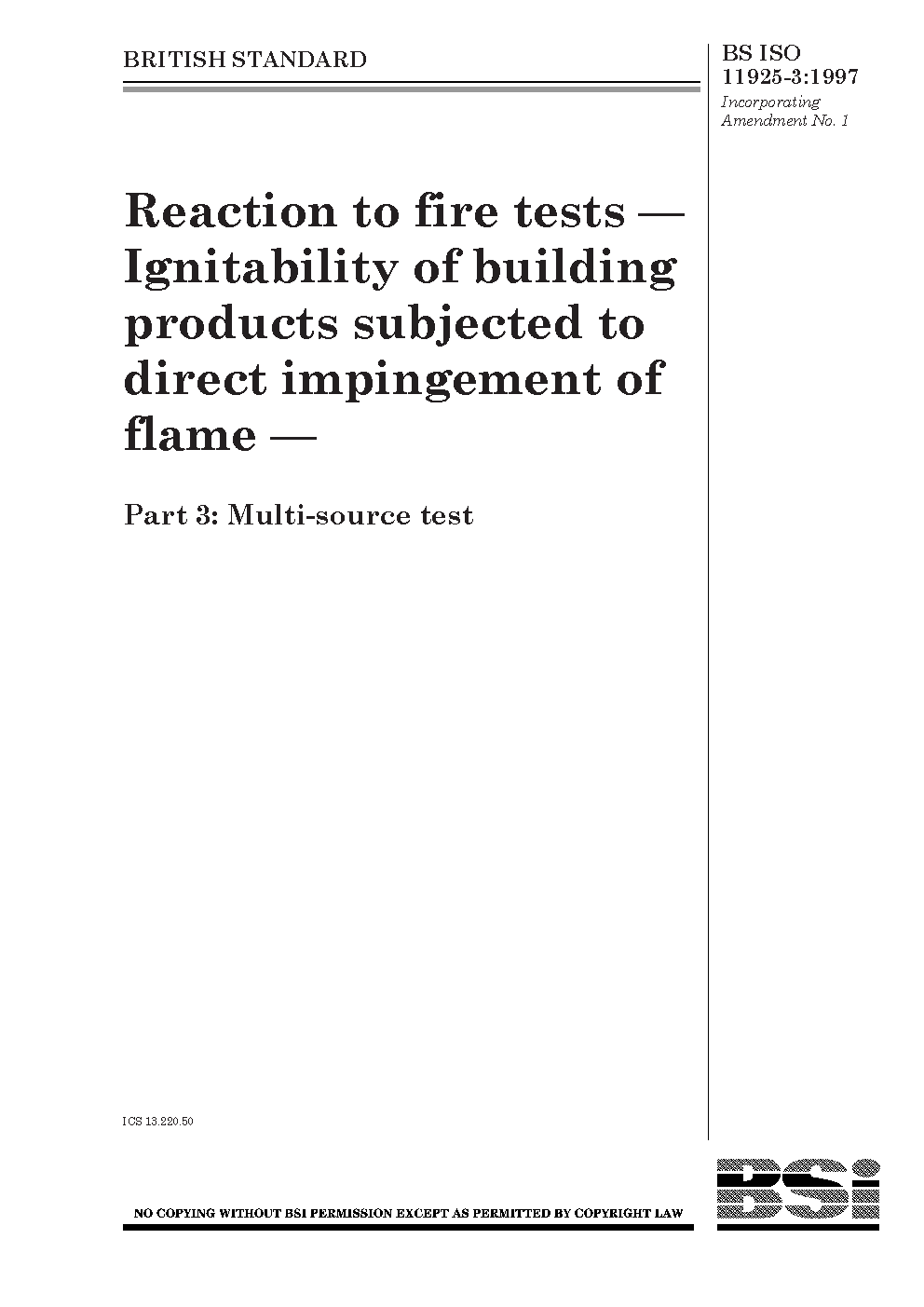 Reaction to fire tests. Ignitability of building products subjected direct impingement flame Multi-source test