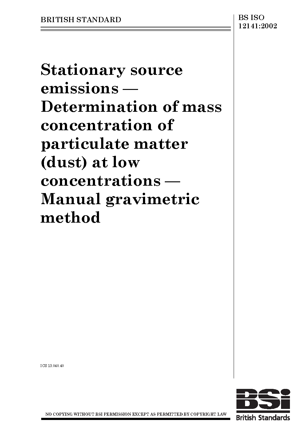Stationary source emissions. Determination of mass concentration of particulate matter (dust) at low concentrations. Manual gravimetric method