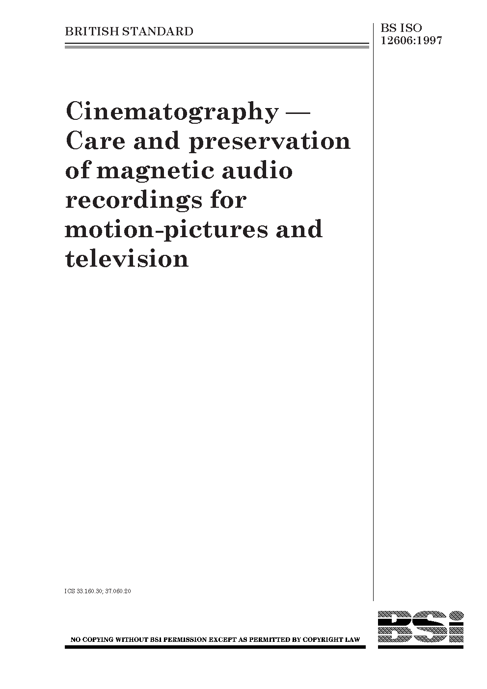 Plastic deformation;Dimensional changes;Sound recording;Cinematography;Motion-picture film;Magnetic field effects;Thermal-cycling tests;Magnetic recording;Chemical properties;Bibliography;Cinema (arts);Thickness;Moisture;Stability;Magnetic storage;Thermal testing;Television;Preservation