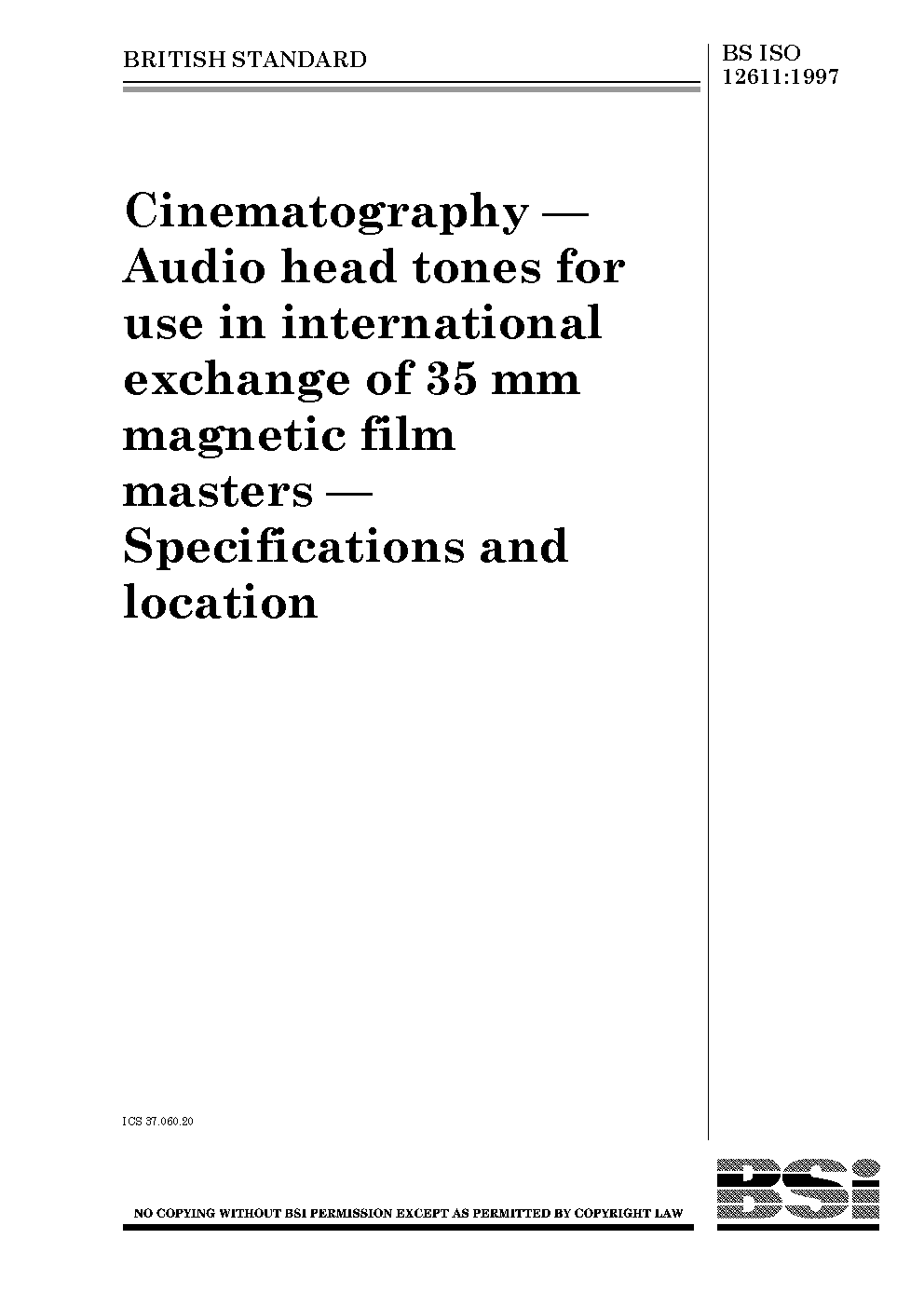 Cinematography. Audio head tones for use in international exchange of 35 mm analogue magnetic film masters. Specifications and location