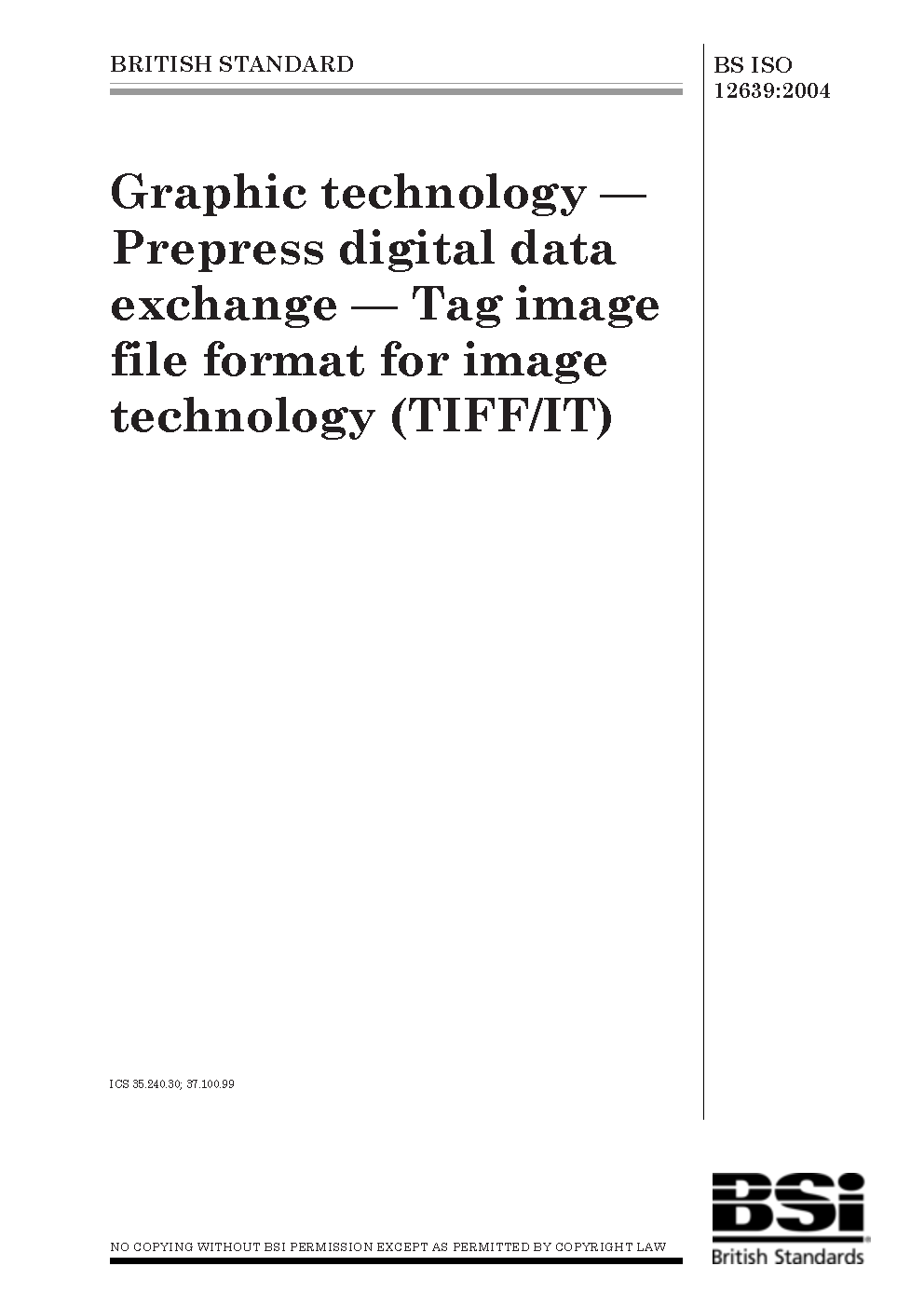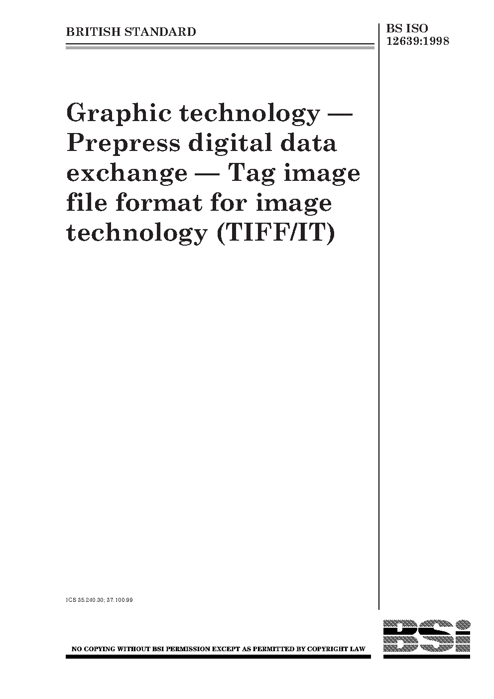 Graphic technology. Prepress digital data exchange. Tag image file format for image technology (TIFF/IT)