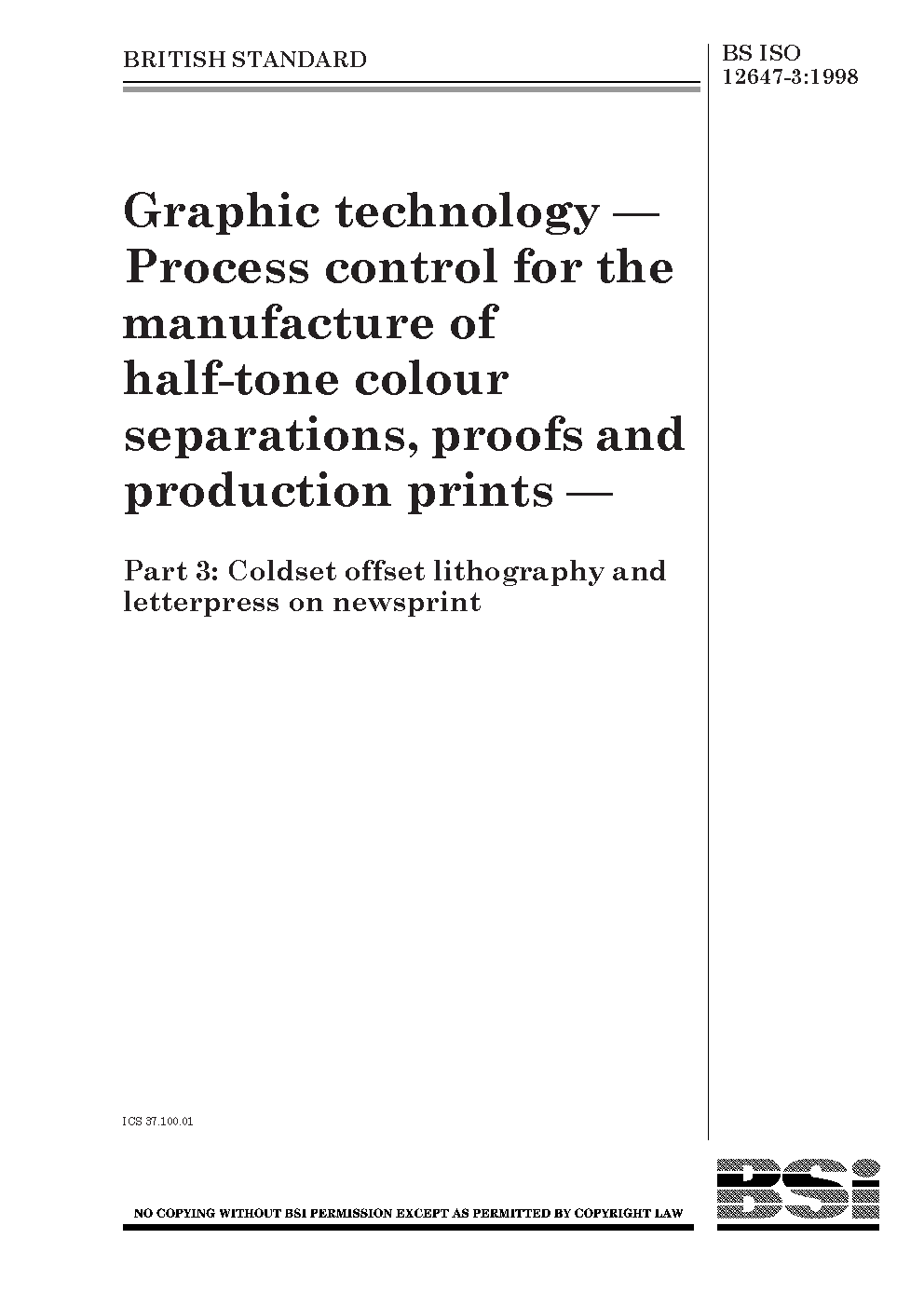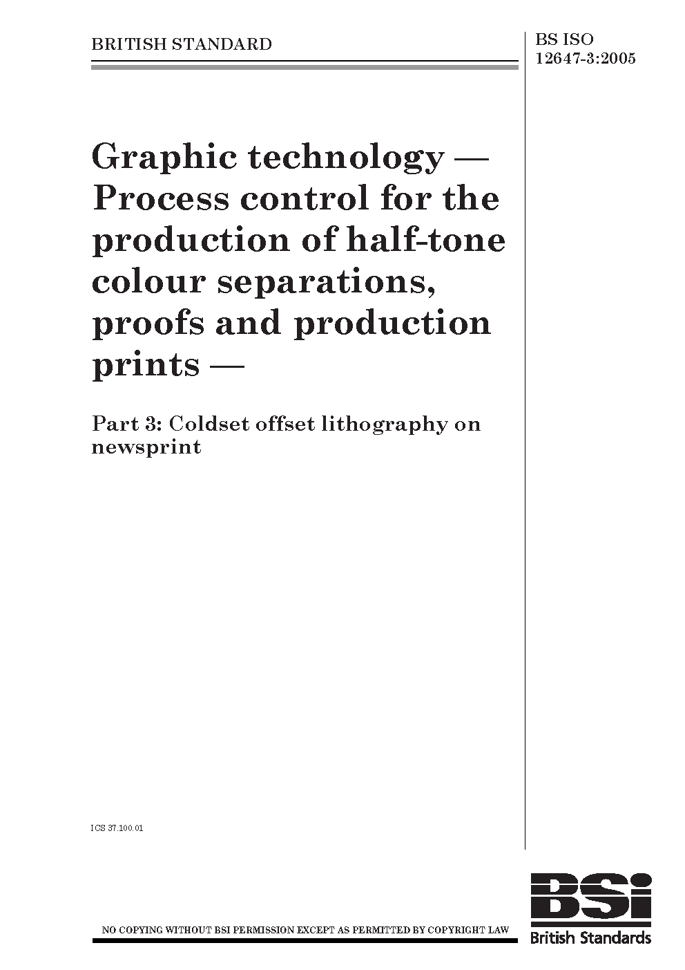 Graphic technology. Process control for the production of half-tone colour separations, proofs and prints Coldset offset lithography on newsprint