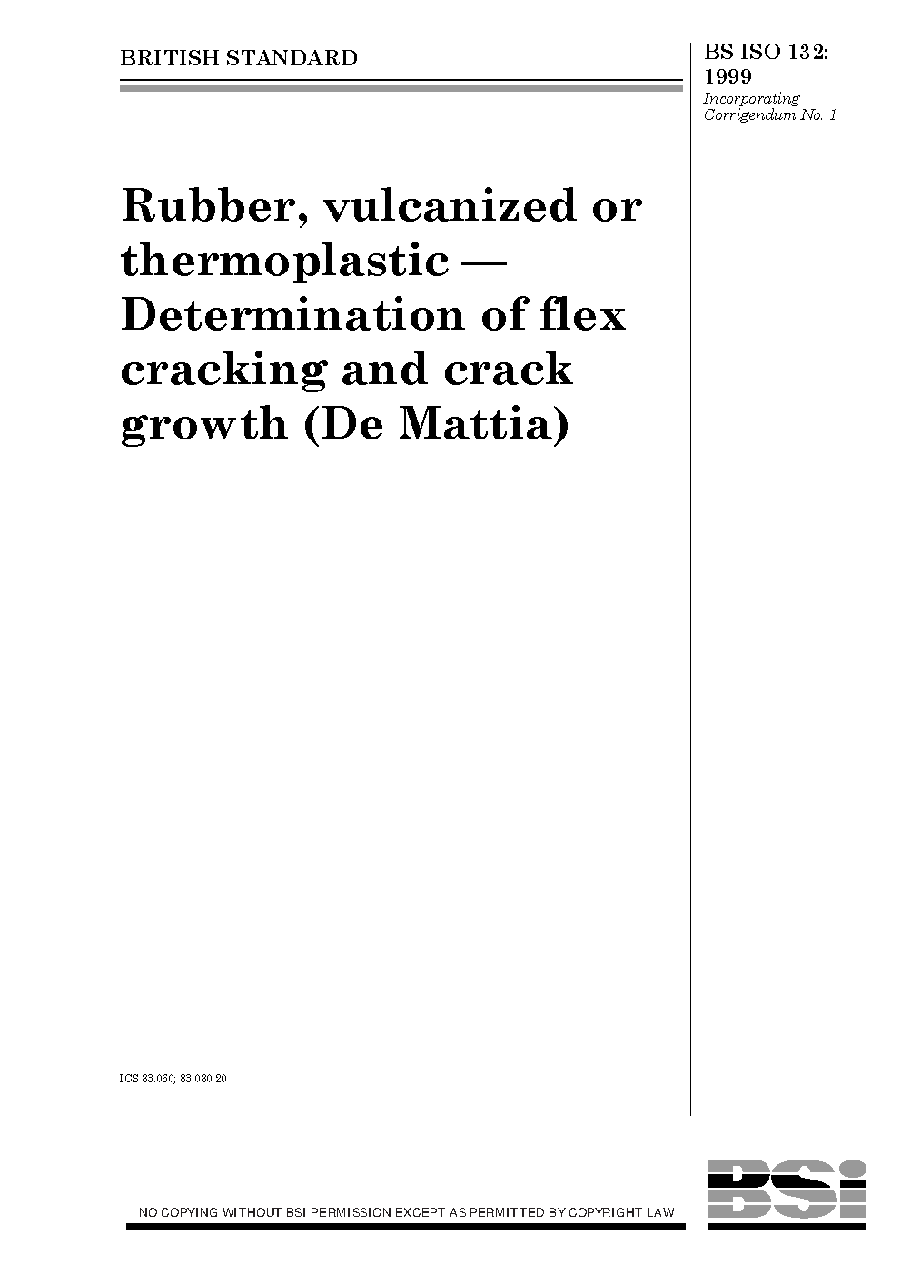 Rubber, vulcanized or thermoplastic. Determination of flex cracking and crack growth (De Mattia)