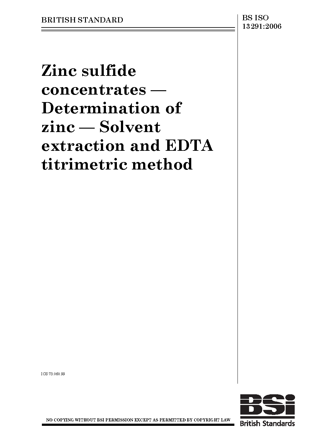 Chemical analysis and testing;Determination of content;Zinc;Solvent extraction methods;Metalliferous minerals;Volumetric analysis;Concentrates;Zinc ores;Zinc inorganic compounds;Sulfides