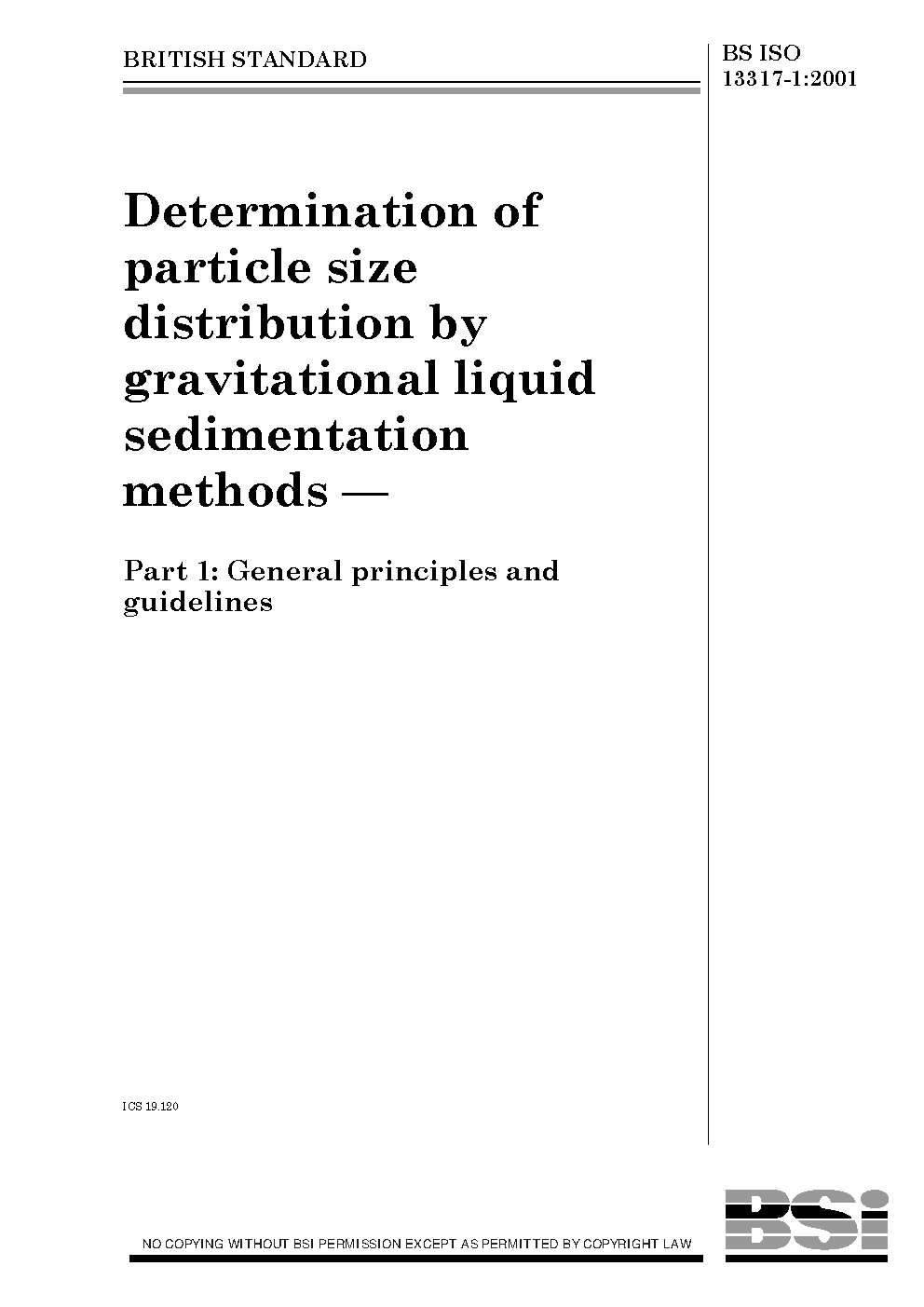 Determination of particle size distribution by gravitational liquid sedimentation methods General principles and guidelines