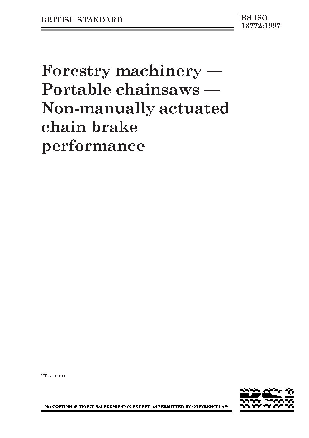Forestry machinery. Portable chain-saws. Non-manually actuated chain brake performance