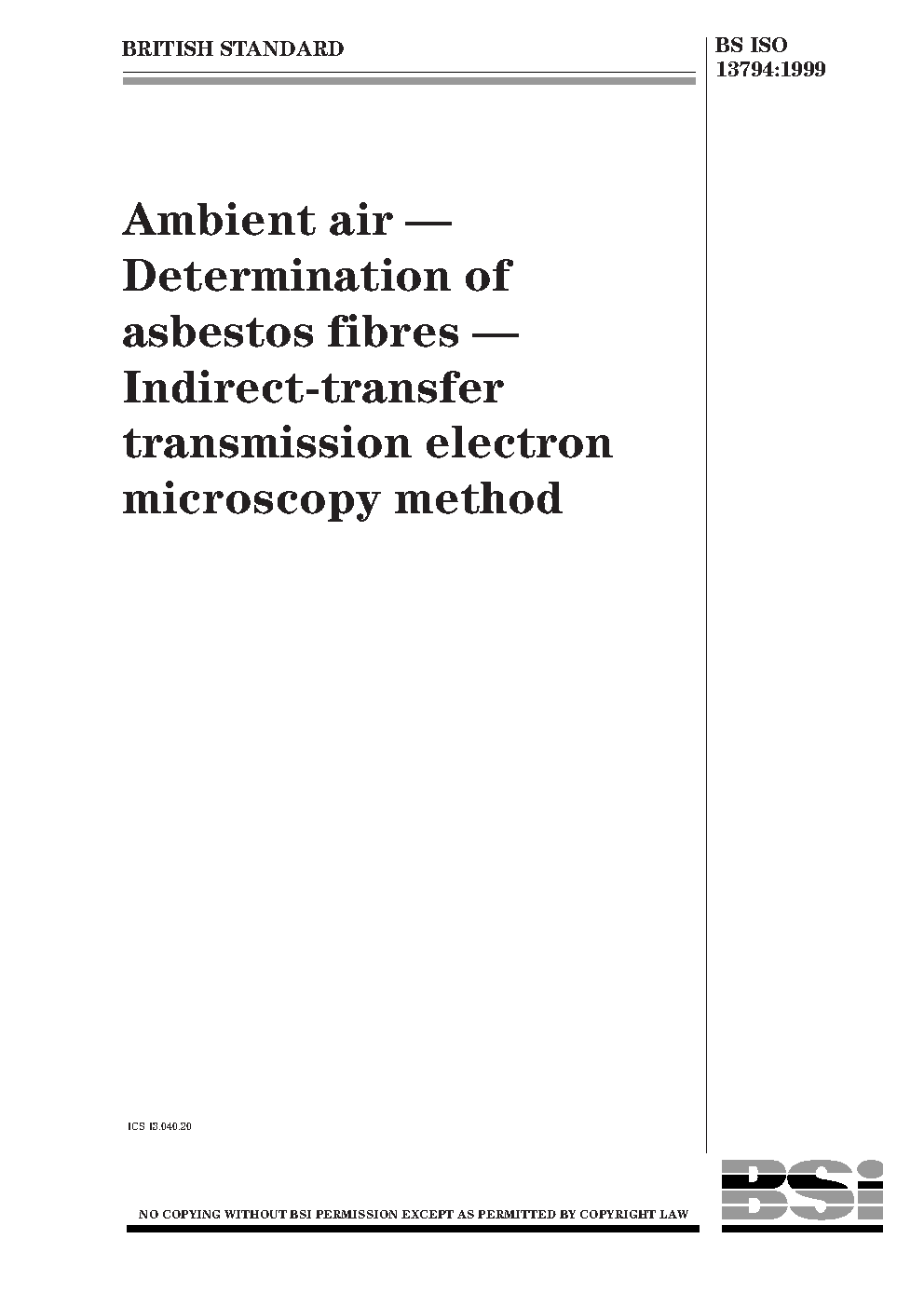 Ambient air. Determination of asbestos fibres. Indirect-transfer transmission electron microscopy method