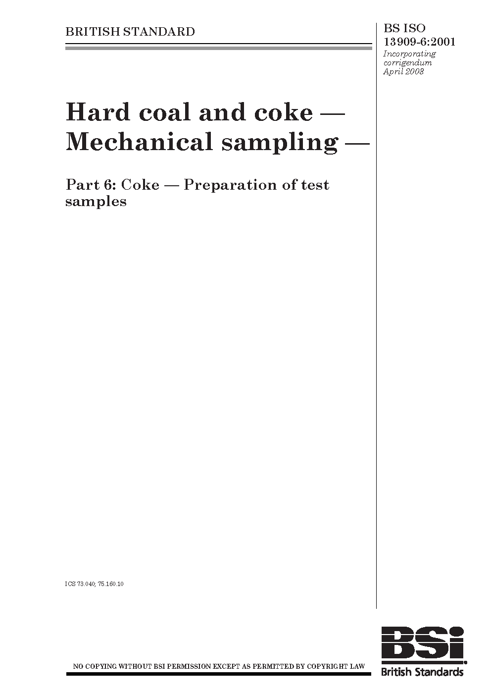 Coal and coke. Mechanical sampling Preparation of test samples coke