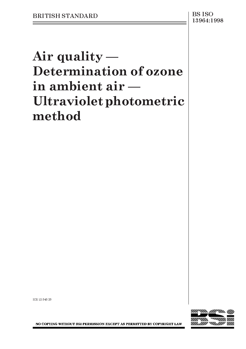 Air quality. Determination of ozone in ambient air. Ultraviolet photometric method
