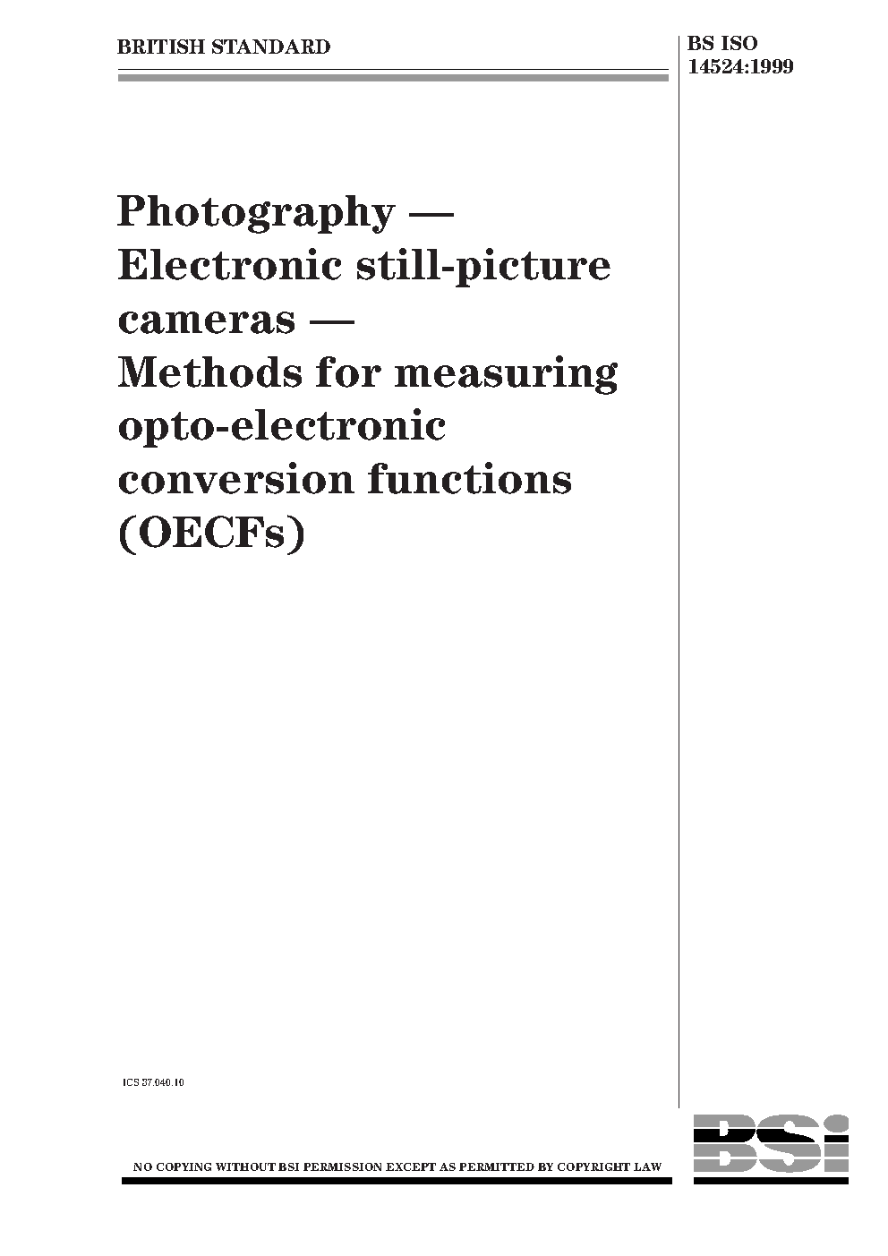 Photography. Electronic still-picture Cameras. Methods for measuring optoelectronic conversion functions (OECFs)