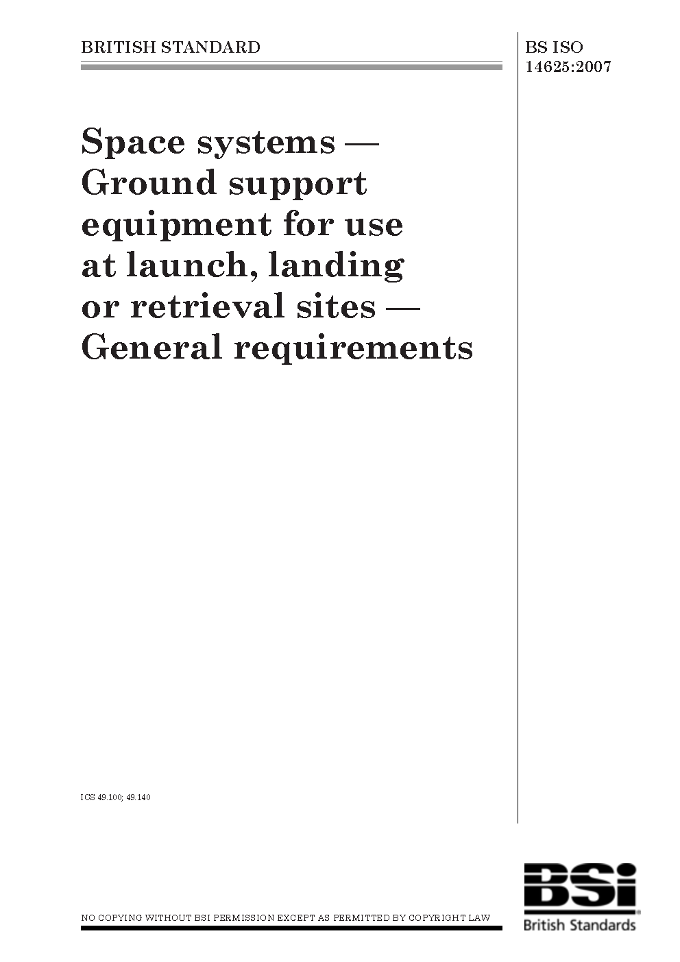 Space systems. Ground support equipment for use at launch, landing or retrieval sites. General requirements