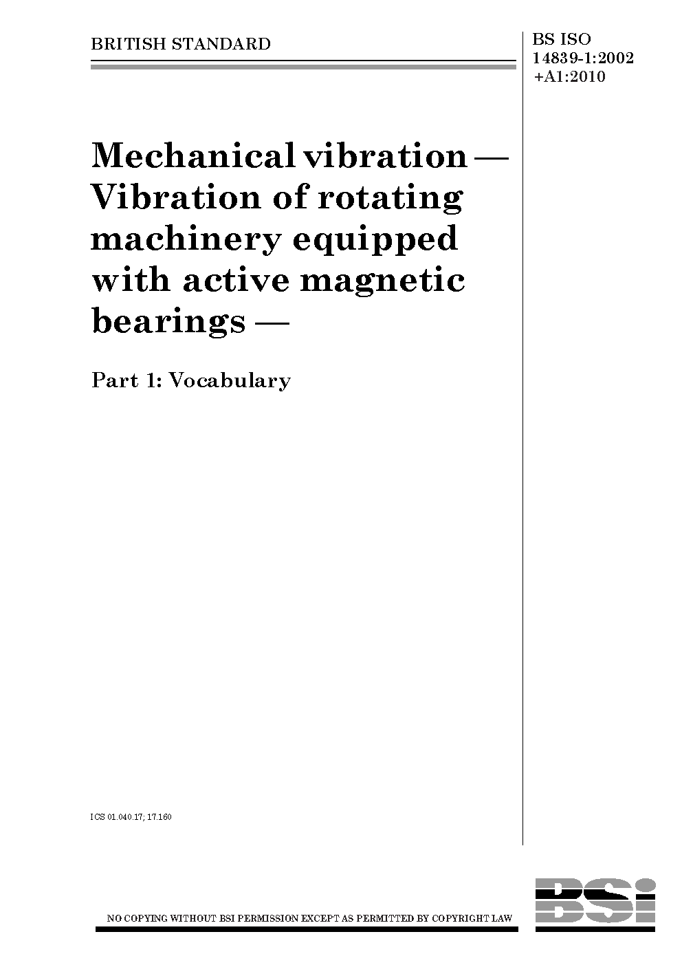 Mechanical vibration. Vibration of rotating machinery equipped with active magnetic bearings Vocabulary