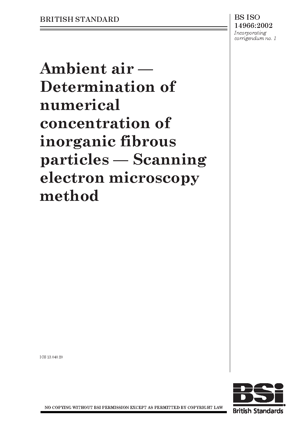 Ambient air. Determination of numerical concentration of inorganic fibrous particles. Scanning electron microscopy method