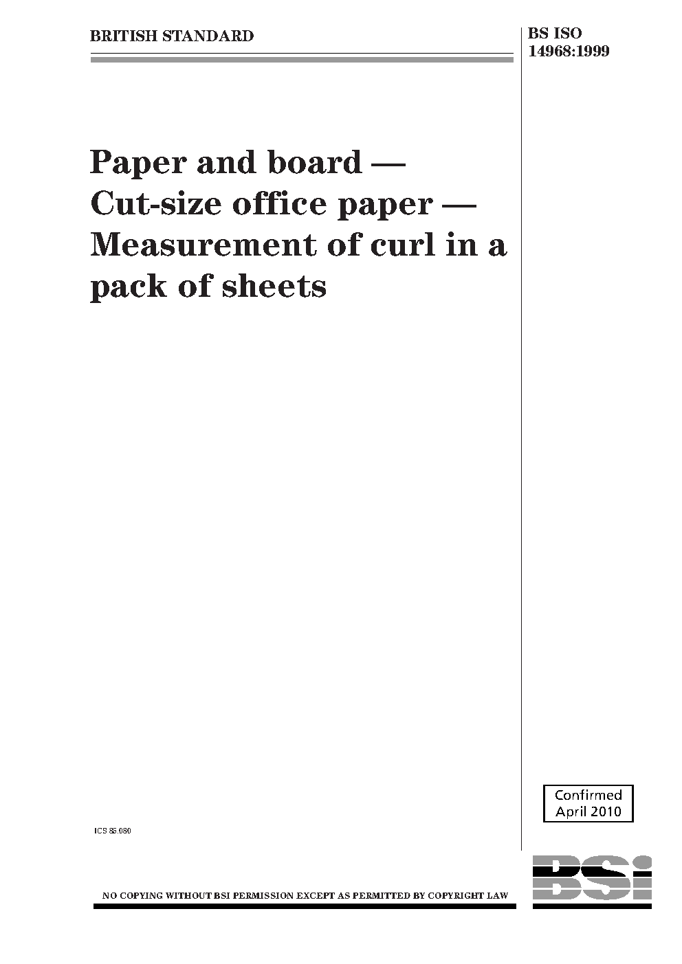 Paper and board. Cut-size office paper. Measurement of curl in a pack of sheets