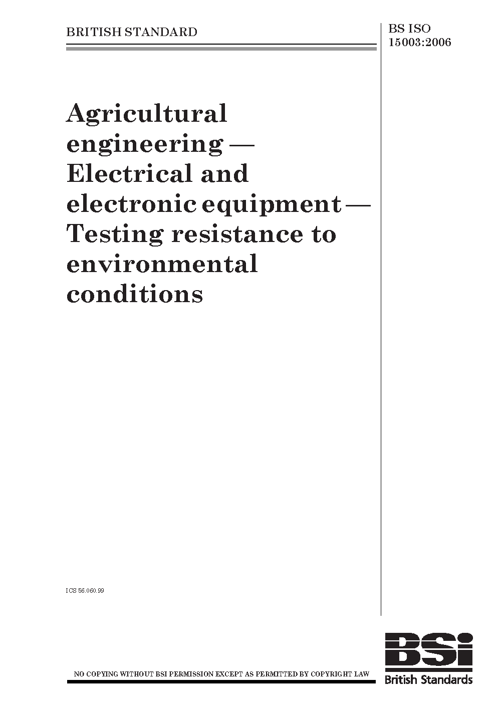 Agricultural engineering. Electrical and electronic equipment. Testing resistance to environmental conditions