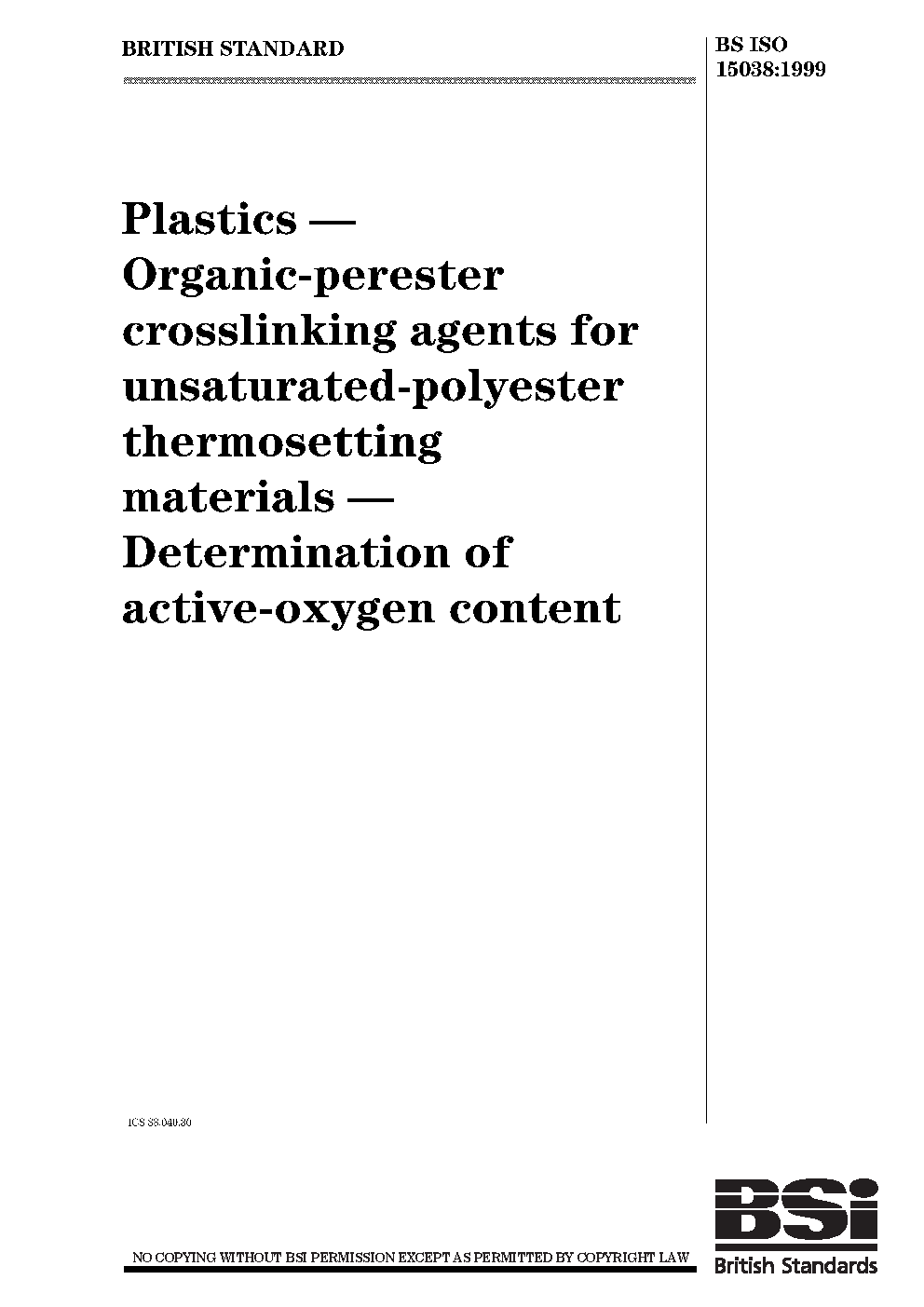 Plastics. Organic-perester crosslinking agents for unsaturated-polyester thermosetting materials. Determination of active-oxygen content