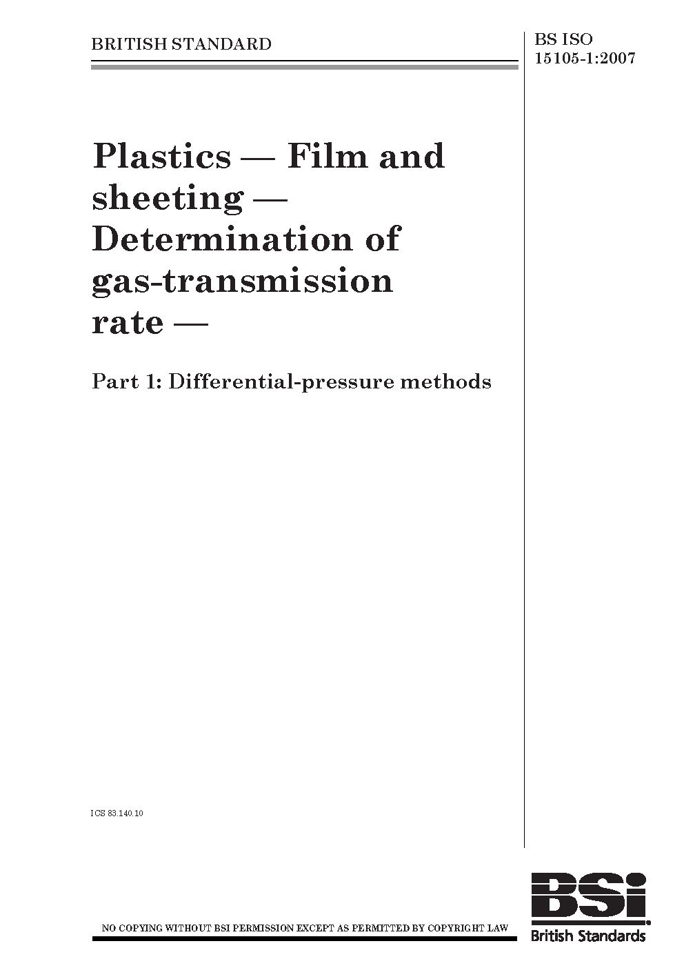 Plastics. Film and sheeting. Determination of gas-transmission rate Differential-pressure methods