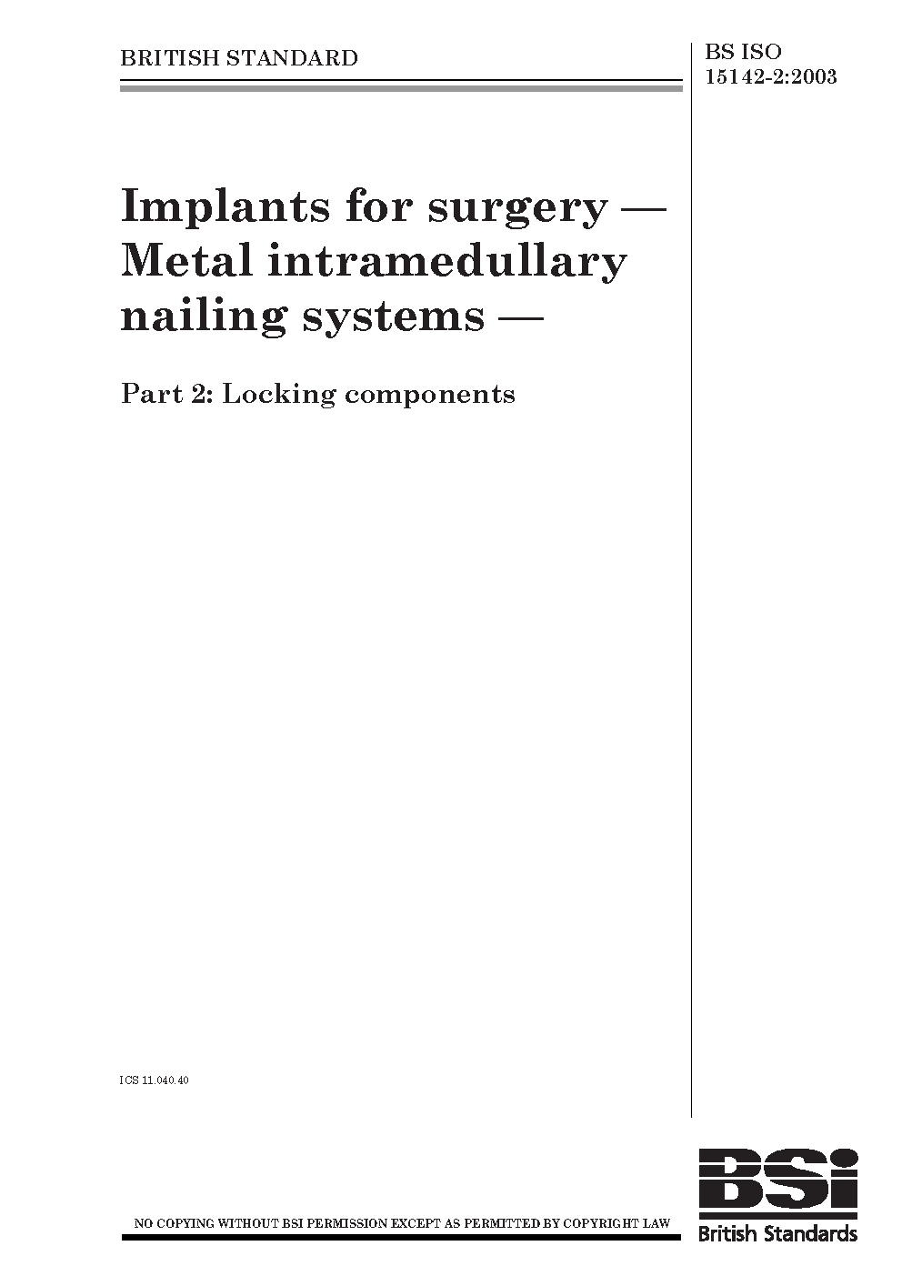 Implants for surgery. Metal intramedullary nailing systems Locking components