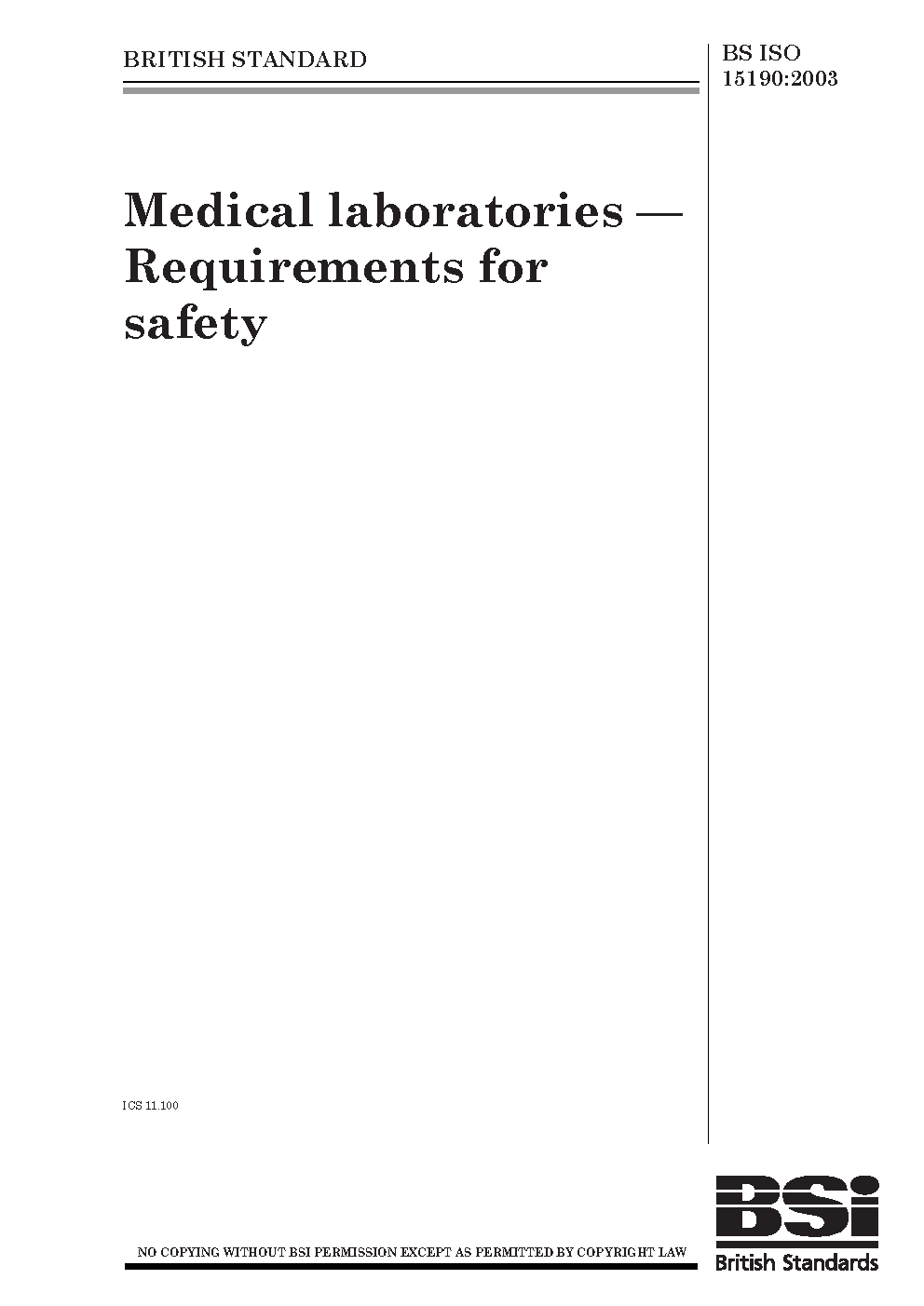 Electrical safety;Biological hazards;Chemical hazards;Safety measures;Medical technology;Emergency exits;Management techniques;Waste disposal;Radiation hazards;Fire risks;Medical laboratory equipment;Documents;Medical equipment;Training;Design;Laboratories;Protective clothing;Health and safety requirements;Safety devices;Personnel management