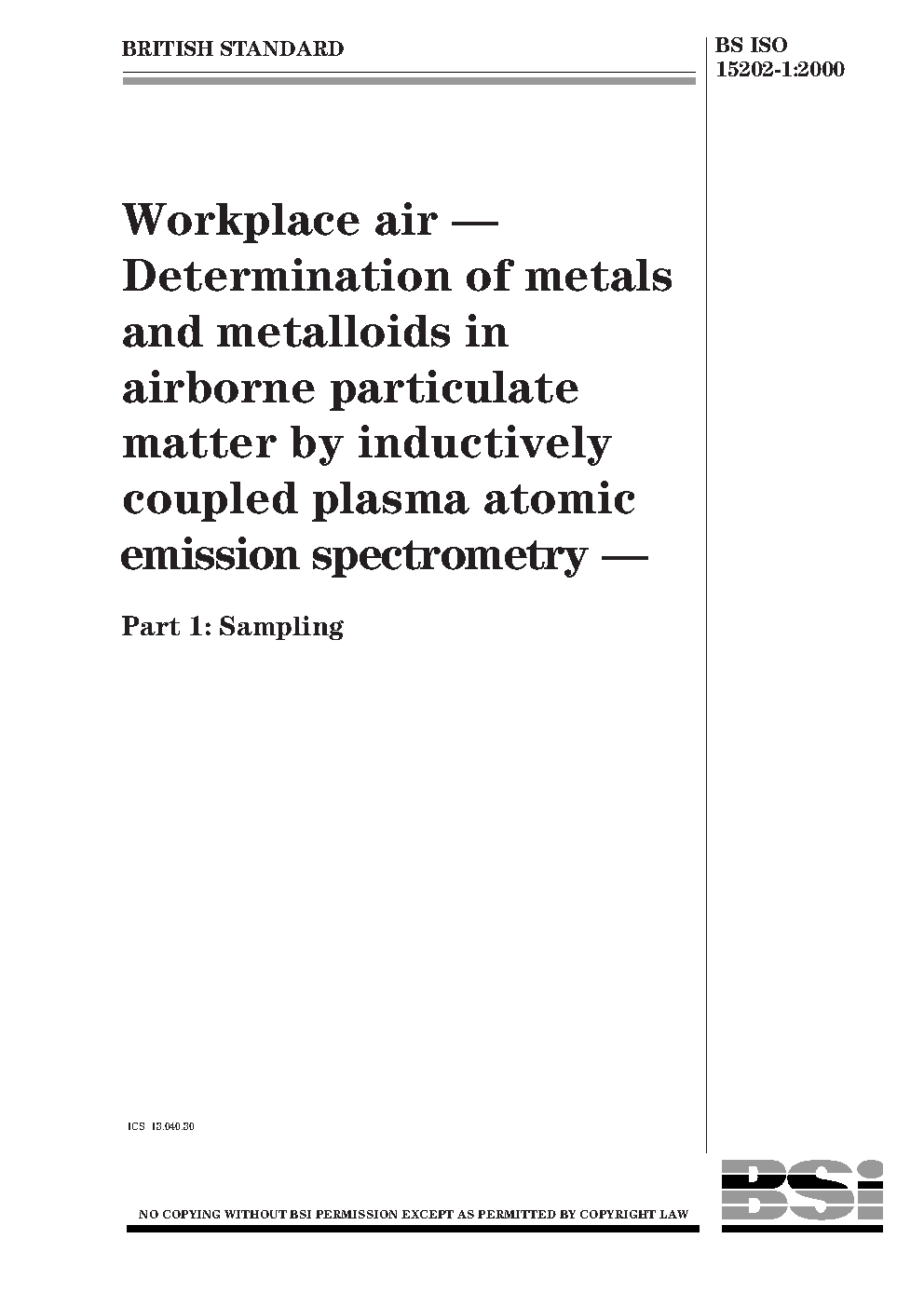 Workplace air. Determination of metals and metalloids in airborne particulate matter by inductively coupled plasma atomic emission spectrometry Sampling