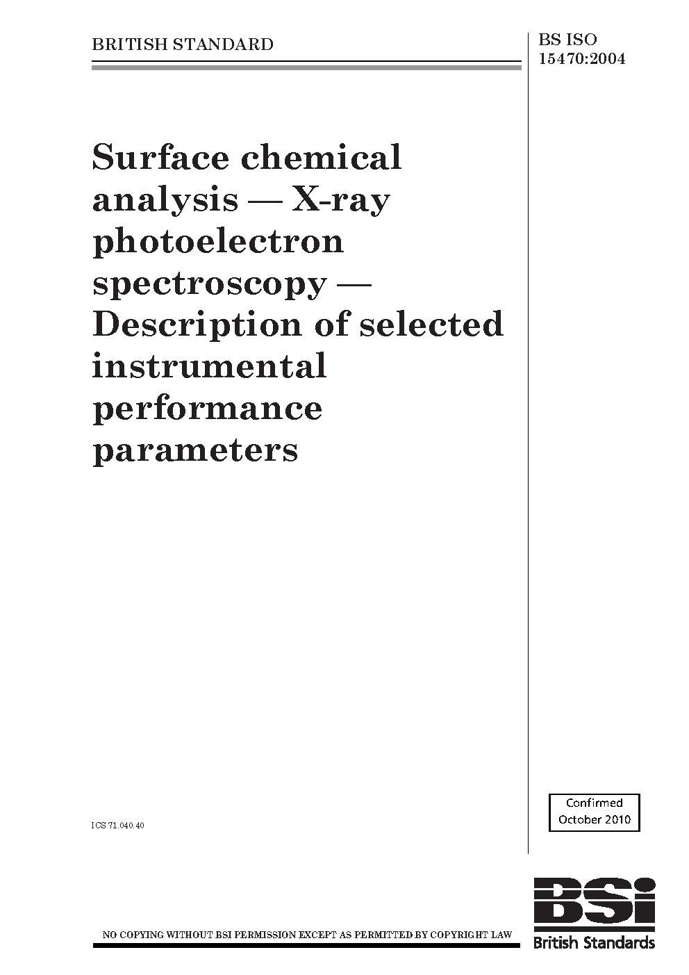 Surface chemical analysis. X-ray photoelectron spectroscopy. Description of selected instrumental performance parameters