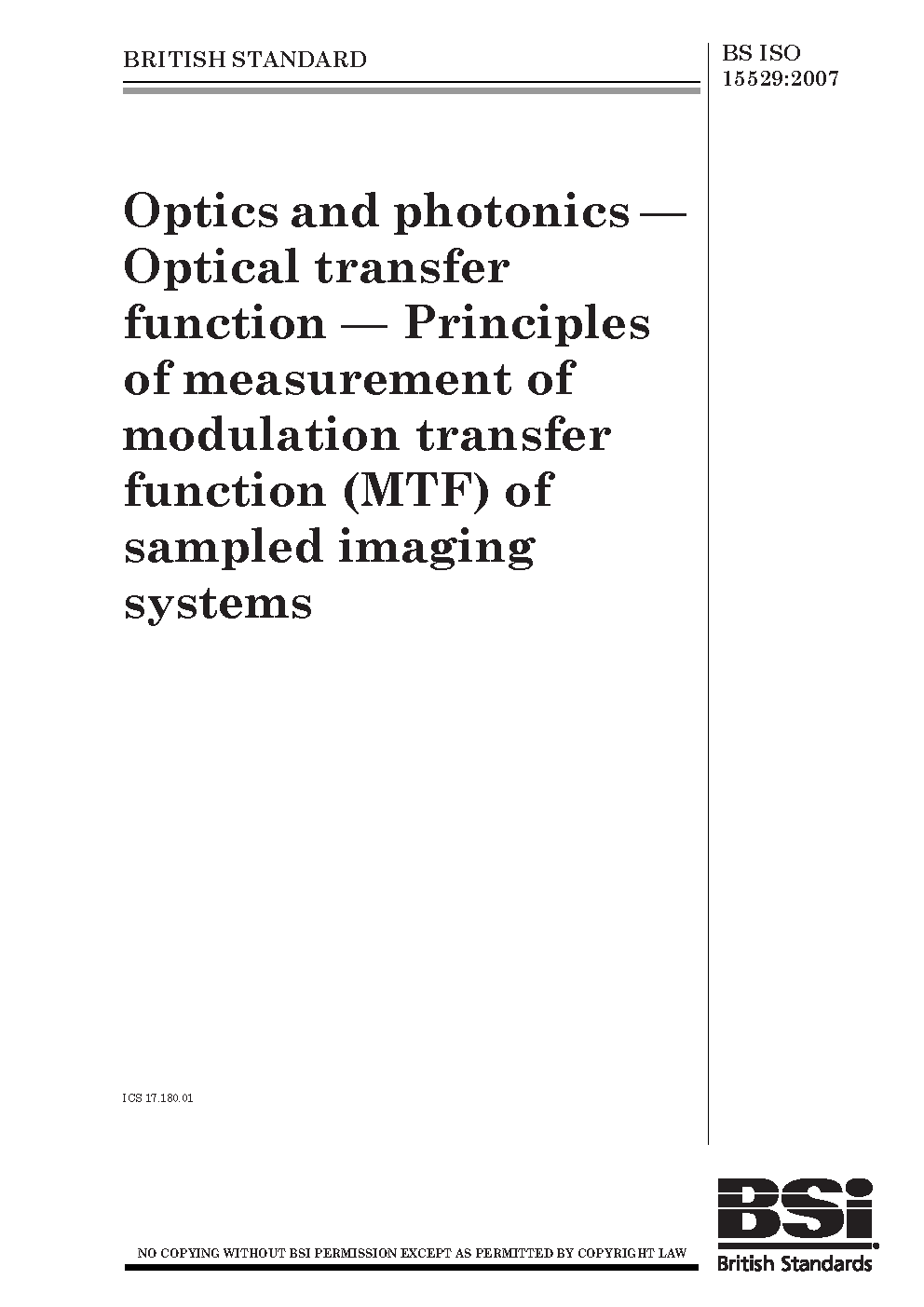 Optics and photonics. Optical transfer function. Principles of measurement of modulation transfer function (MTF) of sampled imaging systems