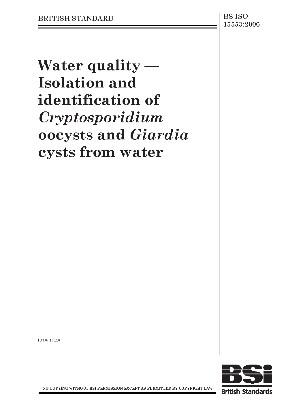 Water quality. Isolation and identification of Cryptosporidium oocysts and Giardia cysts from water