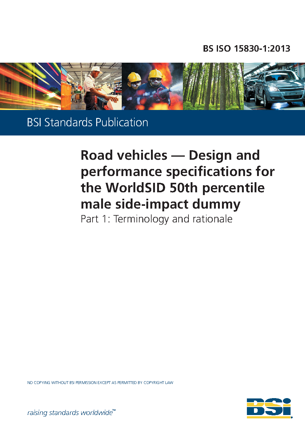 Road vehicles. Design and performance specifications for the WorldSID 50th percentile male side-impact dummy Terminology rationale