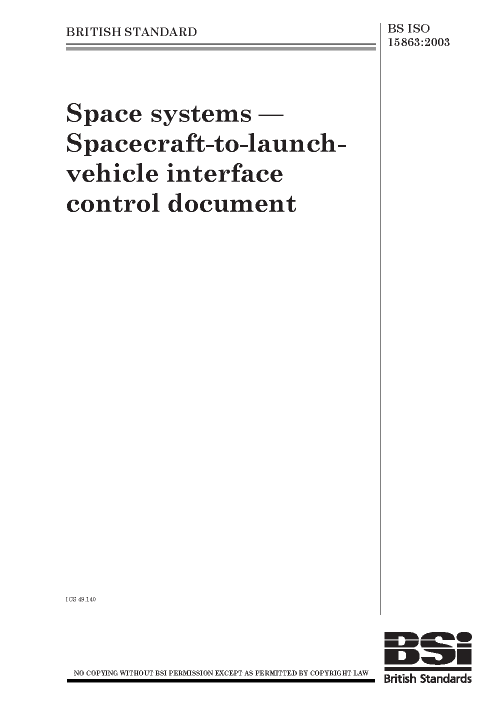 Space systems. Spacecraft-to-launch-vehicle interface control document