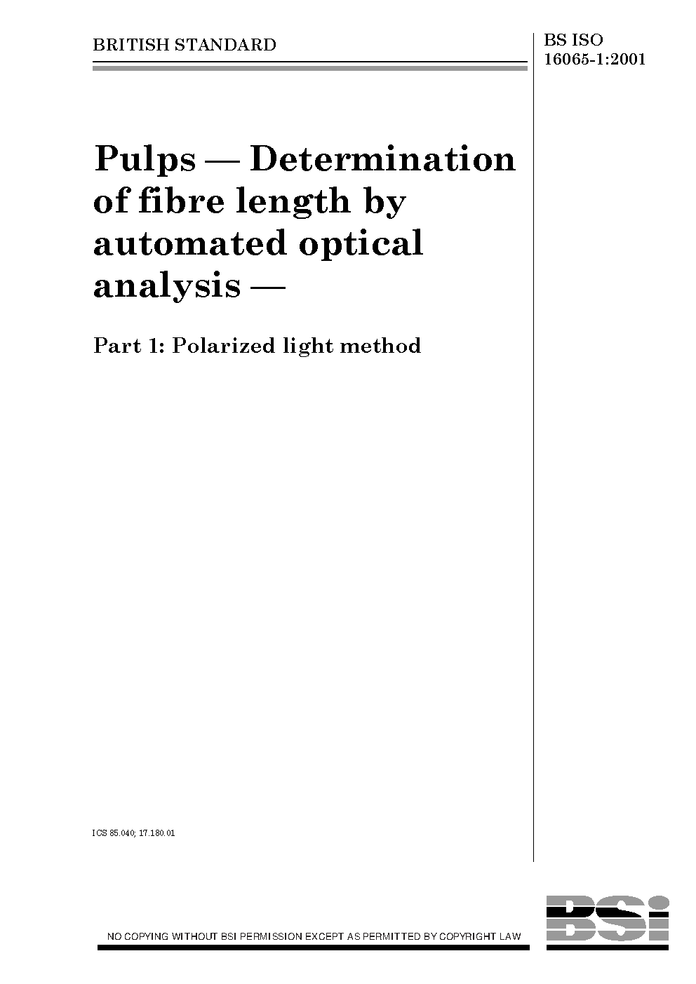 Pulps. Determination of fibre length by automated optical analysis Polarized light method